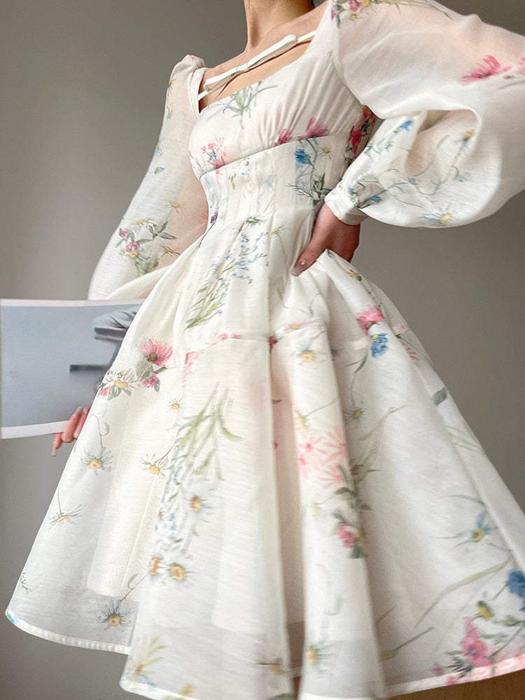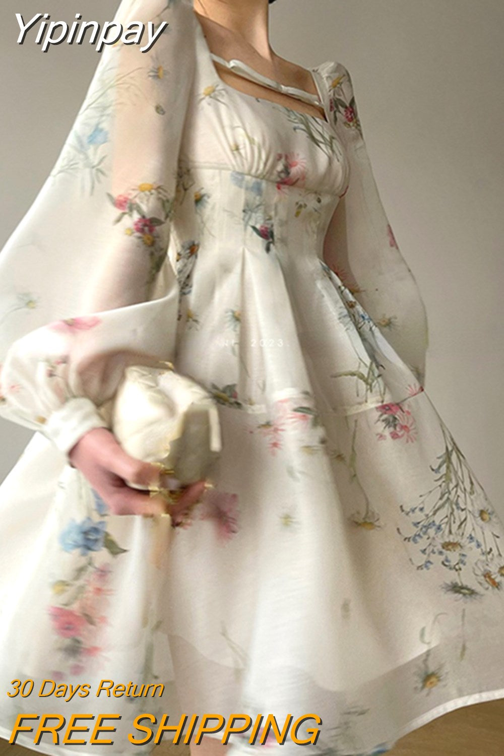 Yipinpay Summer Korean Fashion Y2k Mini Dress Woman Beach Chiffon Elegant Floral Sundress Party Casual Vintage Dress Office Lady