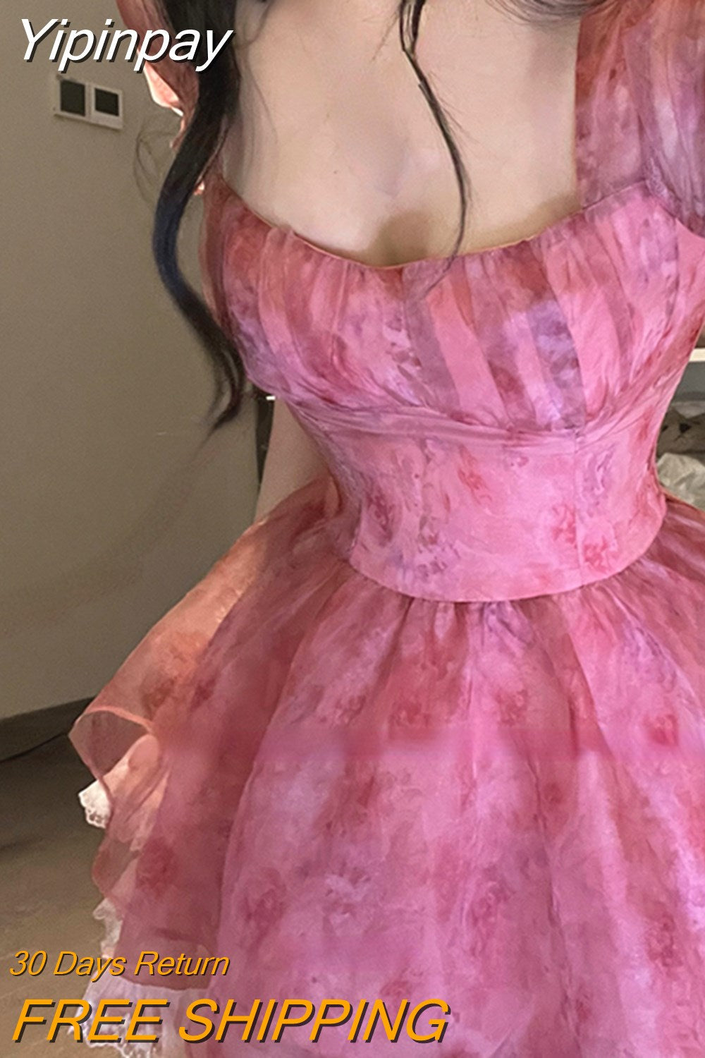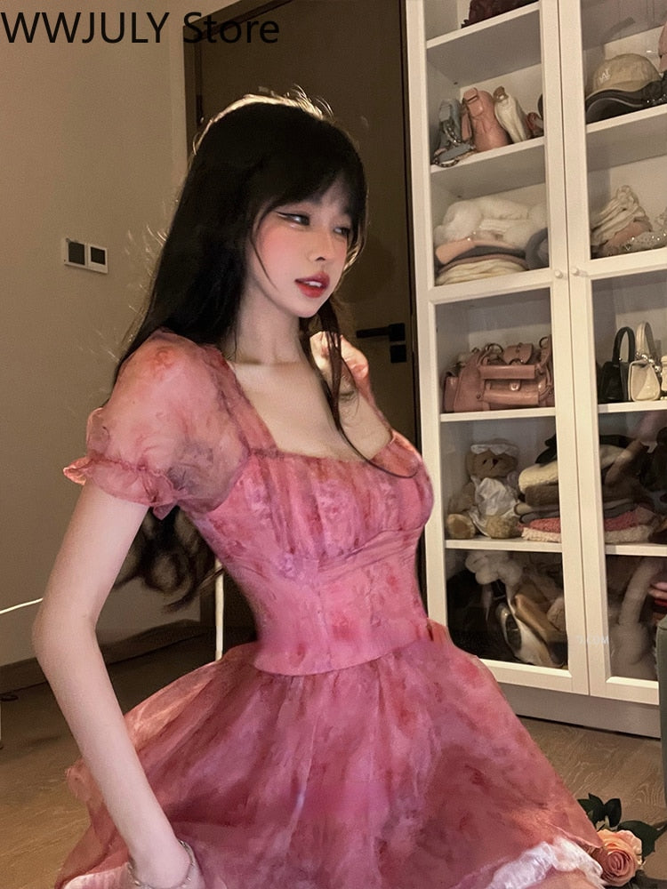 Yipinpay Summer Lolita Sweet Short Party Dress Woman Beach Short Sleeve Floral Mini Dress Casual French Elegant Lace Dress Lady Chic