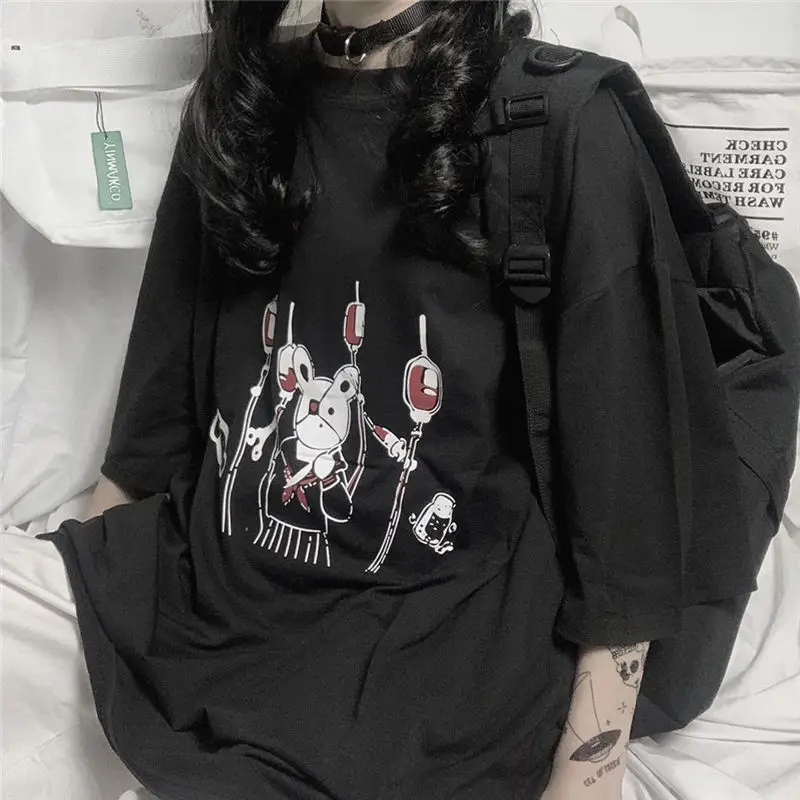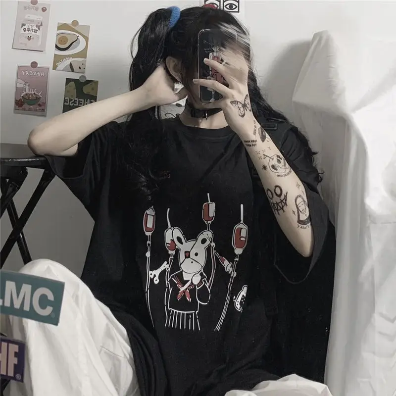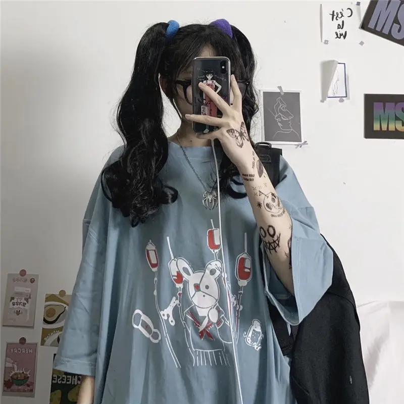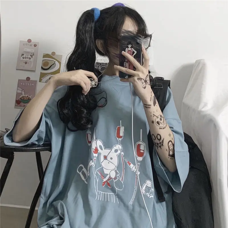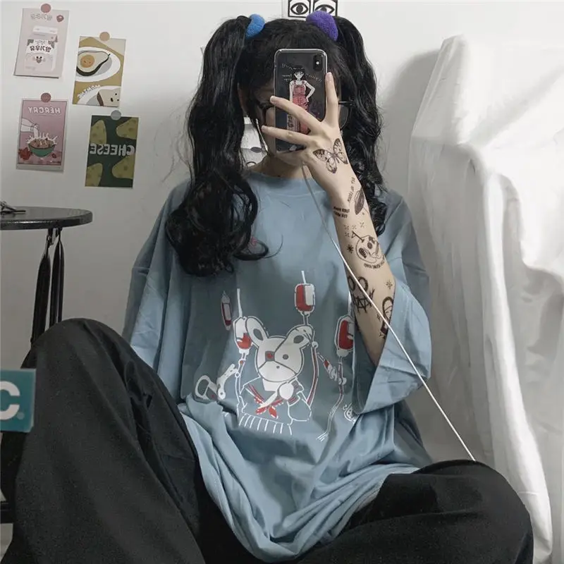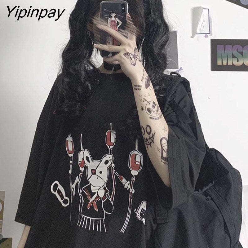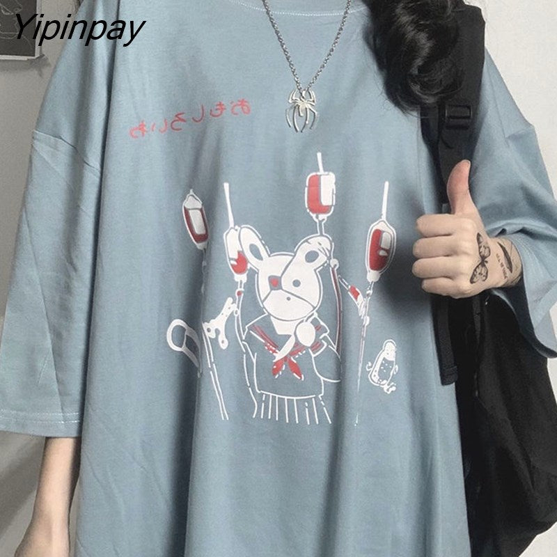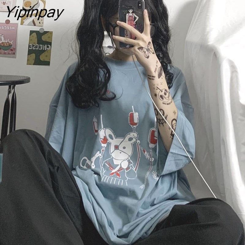 Yipinpay Summer Loose Vintage women tshirt Ulzzang rabbit Street Harajuku cartoon Print Short Sleeve dropshipping clothes