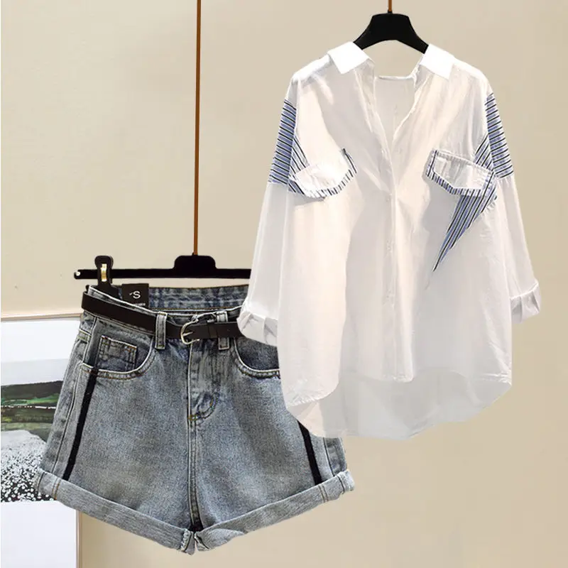 Yipinpay Summer New Fashion Vest Shirt Denim Shorts Three-piece Women's Casual Blouse Pants Suit Korean Elegant Jeans Cardigan Set