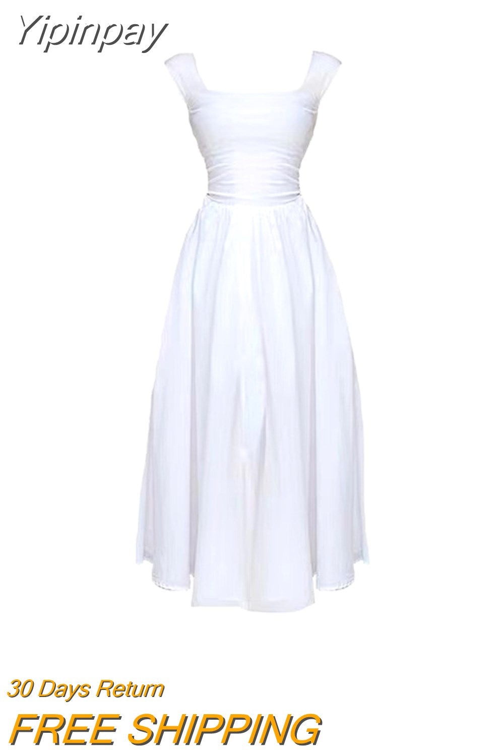 Yipinpay Summer Pure Color Bodycon Midi Dress Office Ladies Slim French Elegant Dress Casual Sleeveless Korean Style Dress Woman