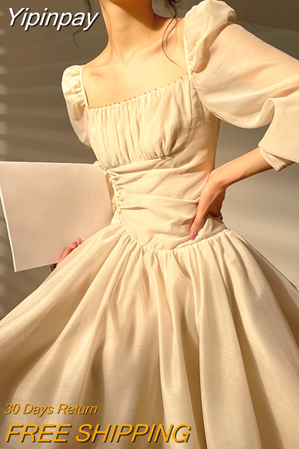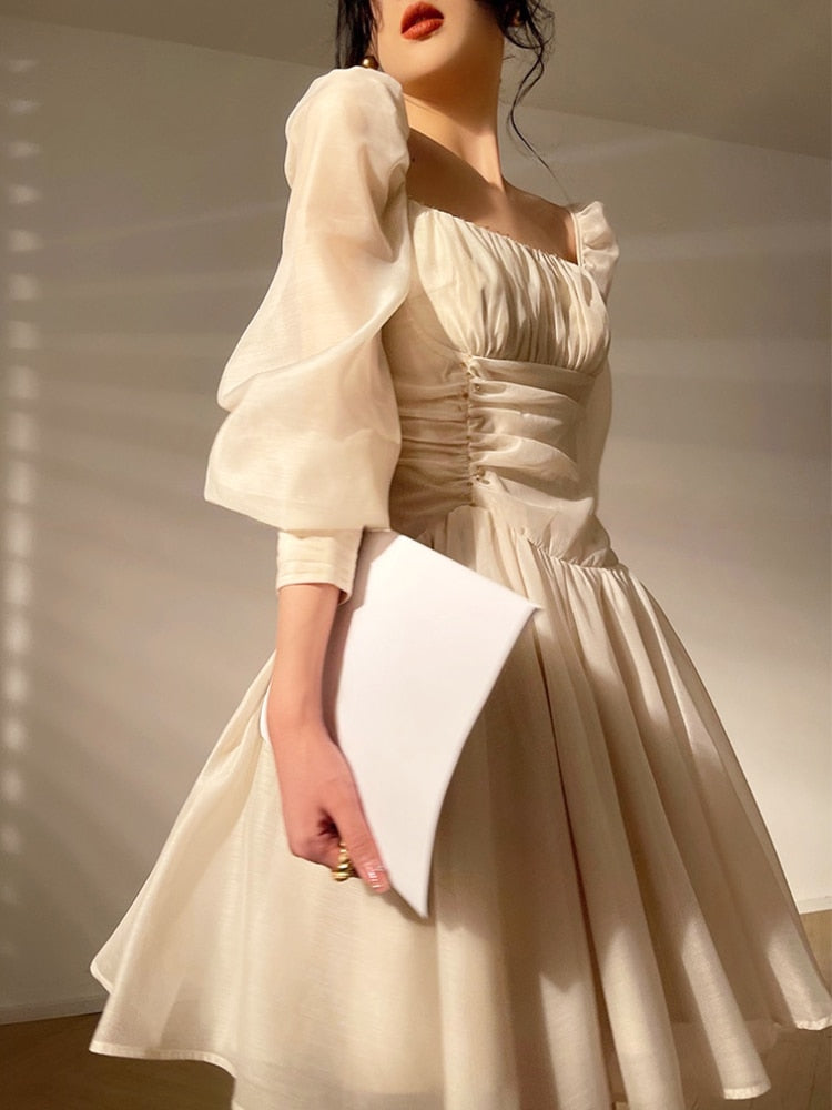 Yipinpay Summer Pure Color Elegant Mini Dress Woman Casual Long Sleeve Short Party Dress Beach Style Korea Fashion Dress Office Lady