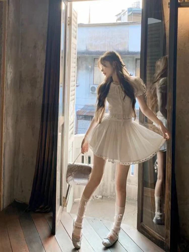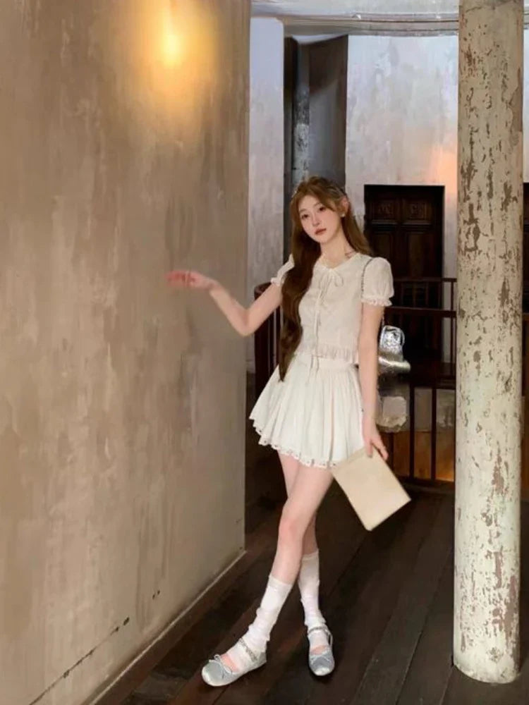 Yipinpay Summer Slim Sweet Elegant 2 Piece Set Women Evening Party Y2k Crop Top + Office Lady Causal Mini Skirt Korean Fashion