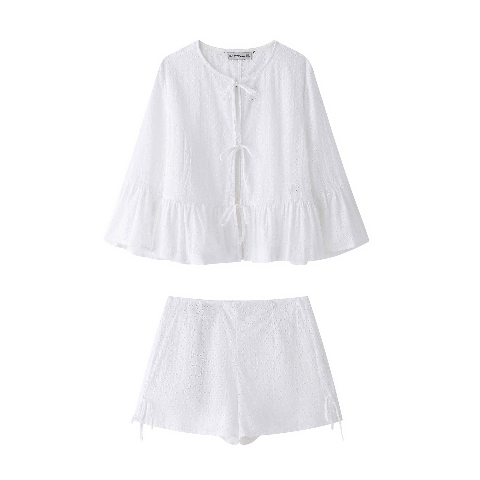 Yipinpay Summer Style Hollowed-Out Embroidered Shirt 8399300 Casual Shorts 8390300
