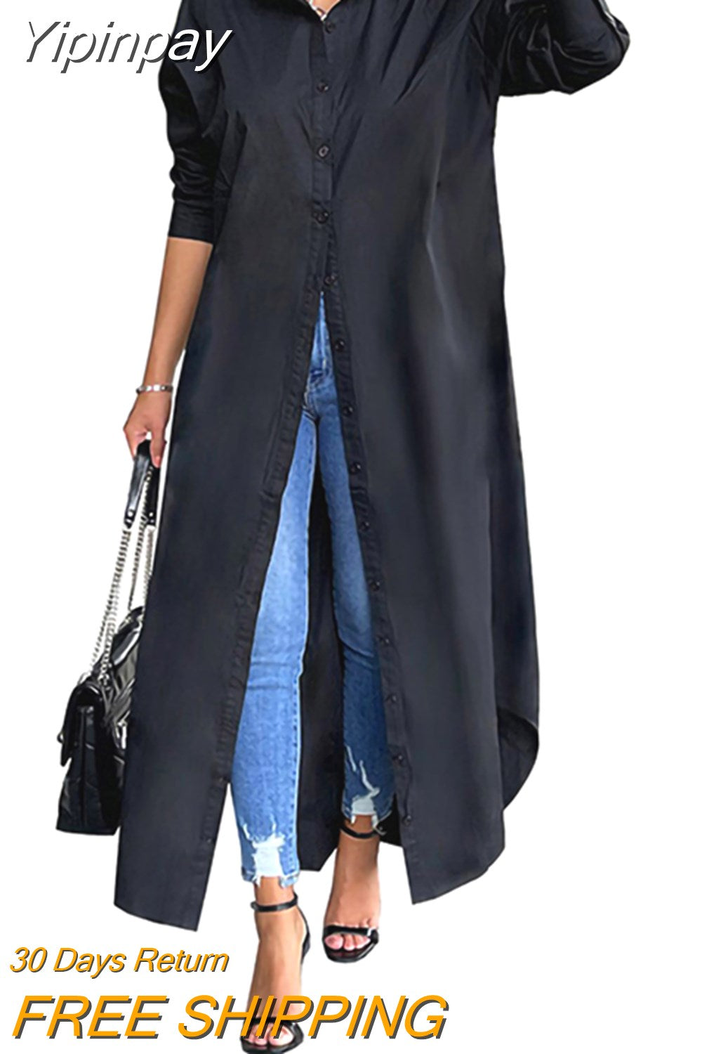 Yipinpay Summer White Long Sleeve Shirt Dress Women Turn-down Collar Button Up Straight Maxi Dress Loose Casual Dresses Vestidos
