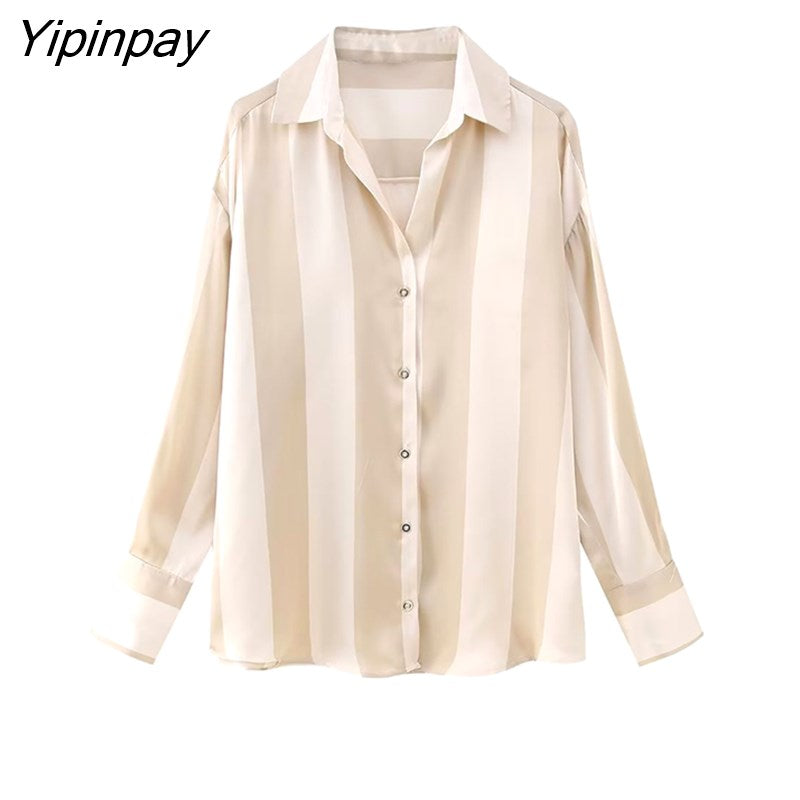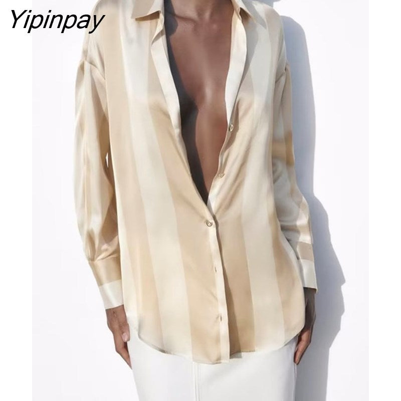 Yipinpay Summer Women Oversized Striped Blouses Shirt 2023 New Causal Turn-Down Collar Tops Vintage Single Breasted Loose T-Shirts