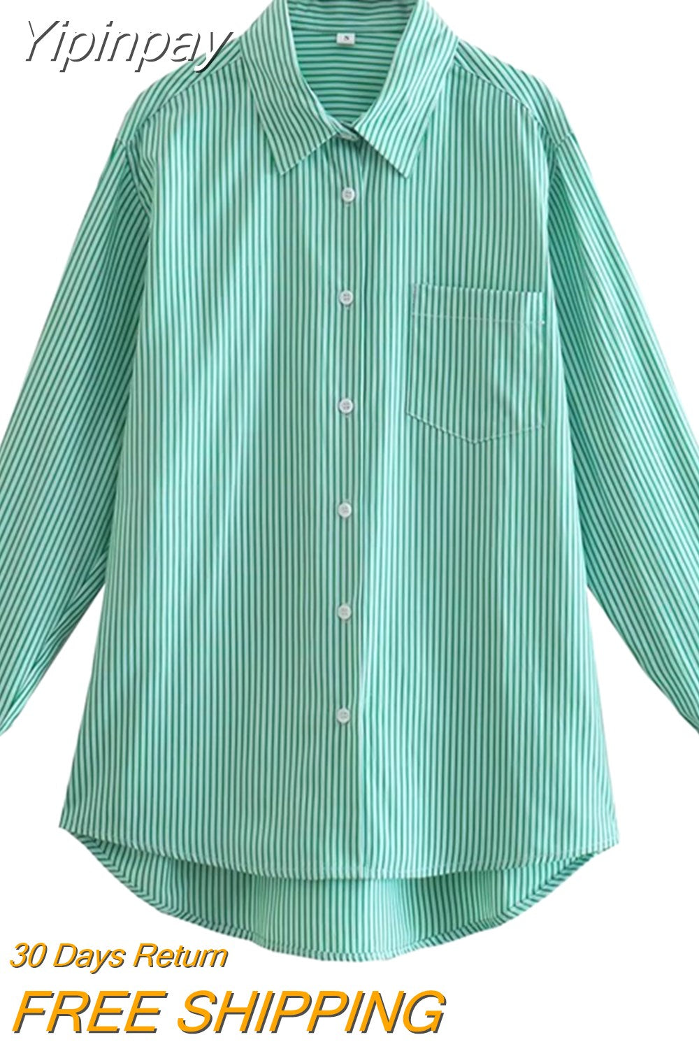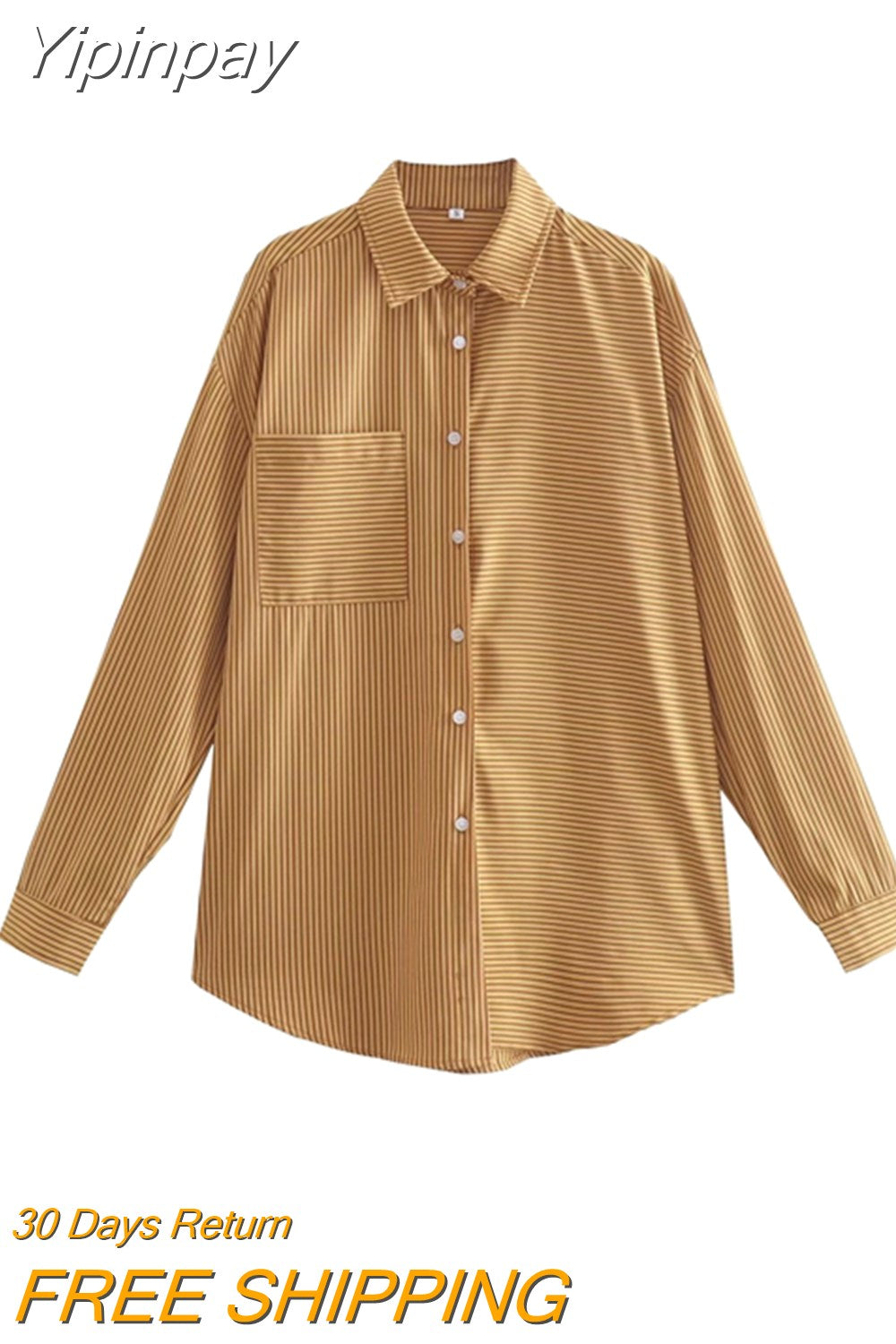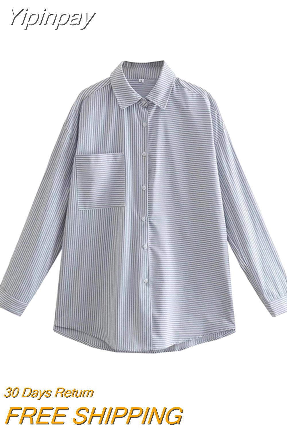 Yipinpay Summer Women's Striped Shirts 2023 Elegant and Youth Woman Blouses Long Sleeve Tops Ladies Casual Loose Shirts and Blouses