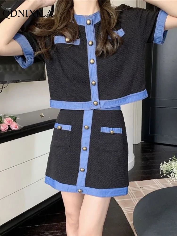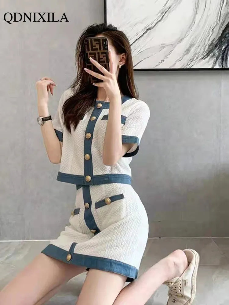 Yipinpay Summer Women's White Suit with Skirt Fashion Age-reducing French Elegant Casual Short Sleeved Shirt Short Skirt 2 Piece Set