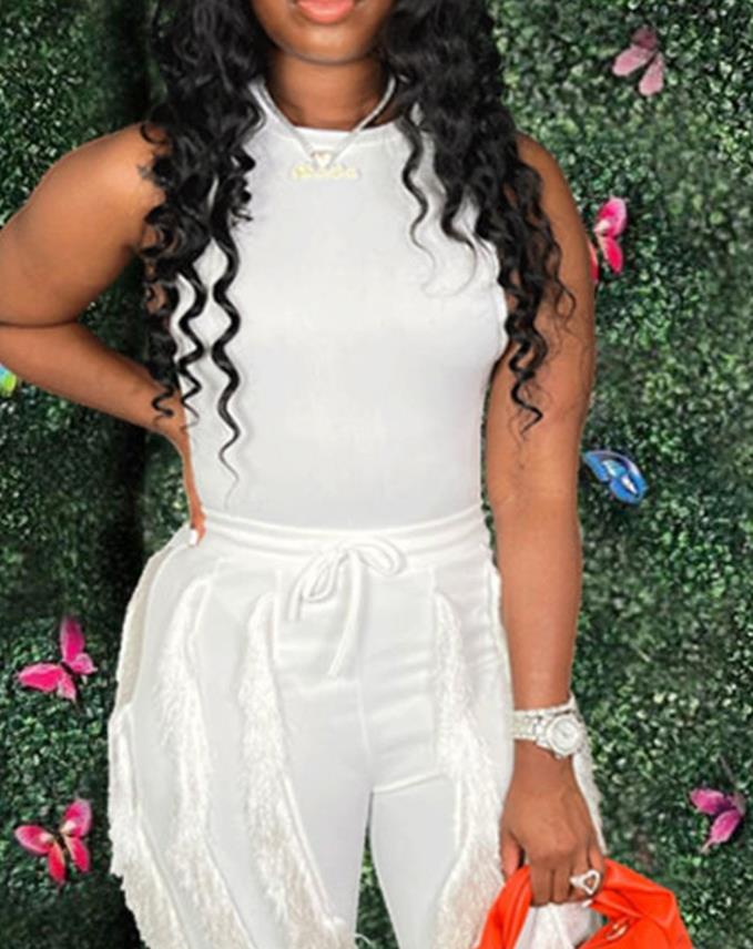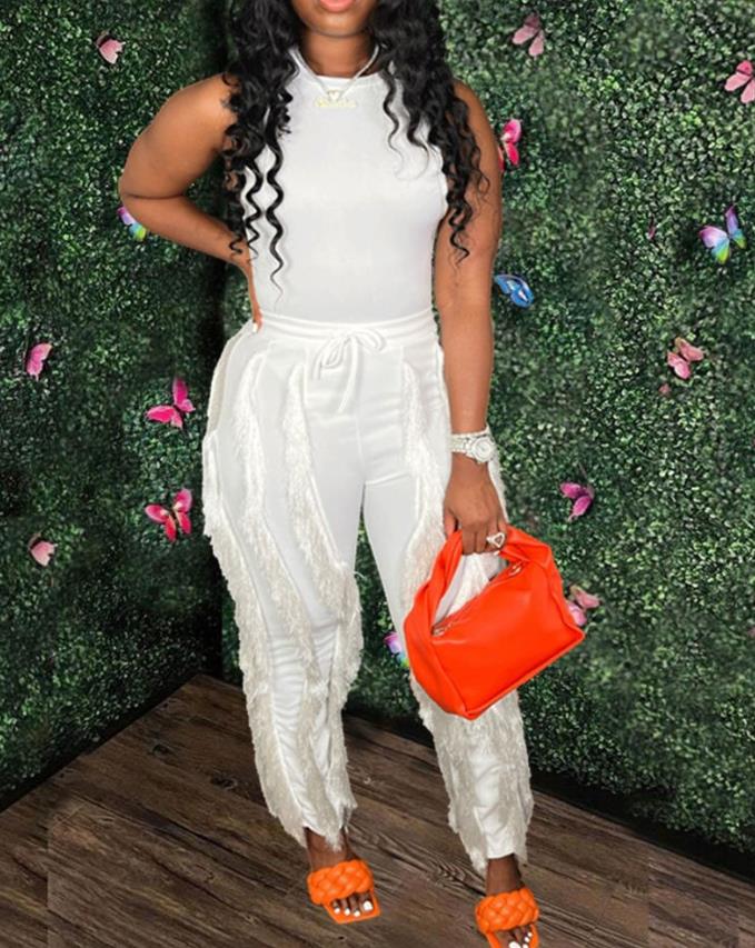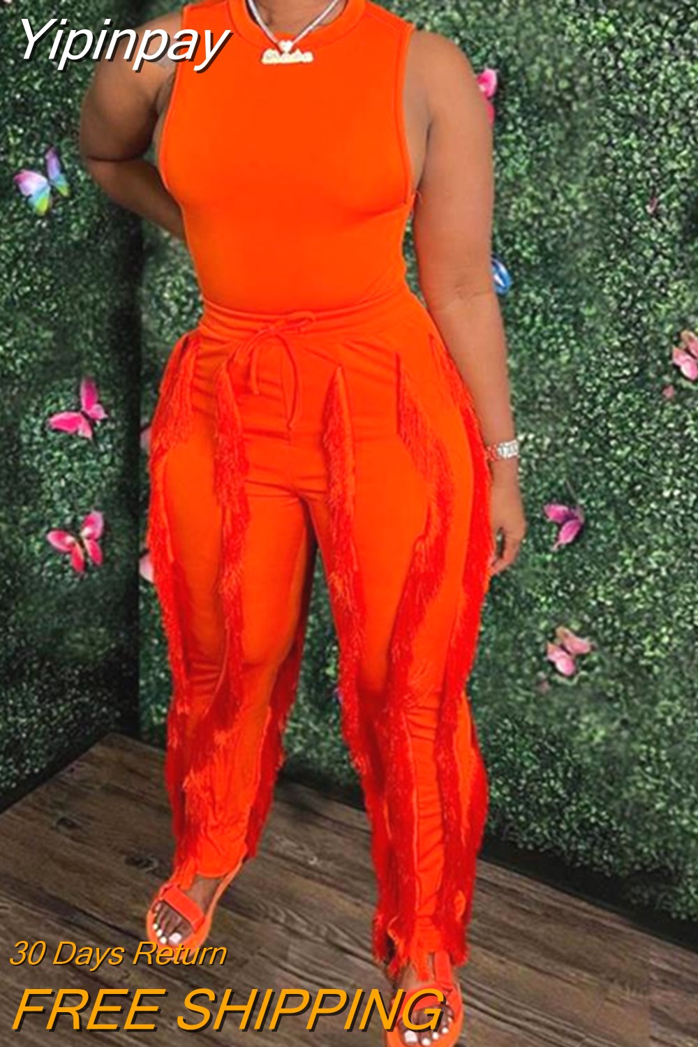 Yipinpay Tank Top & Tassel Decor Drawstring Pants Set 2023 New Fashion Two Piece Sets Female Suit