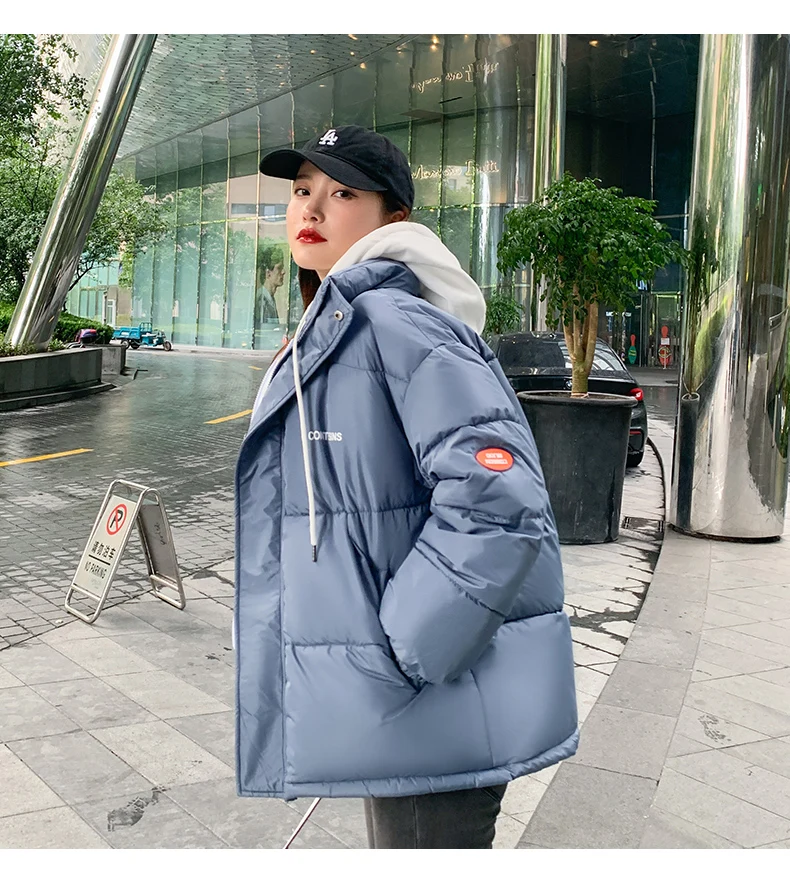 Yipinpay Thicken Women Coats And Jackets Winter Casual Fake Two Piece Cotton Jacket Stitching Hood