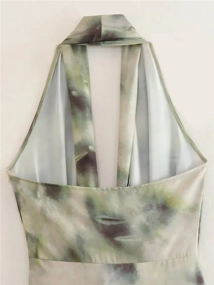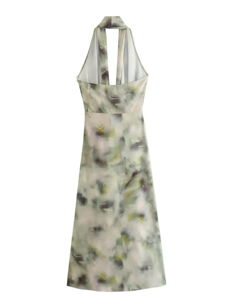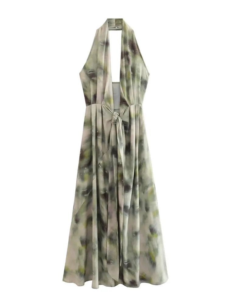 Yipinpay Tie Dye Halter Long Dress Women Summer Sexy Backless Dress Woman 2023 Knot Off Shoulder Sleeveless Midi Party Dresses