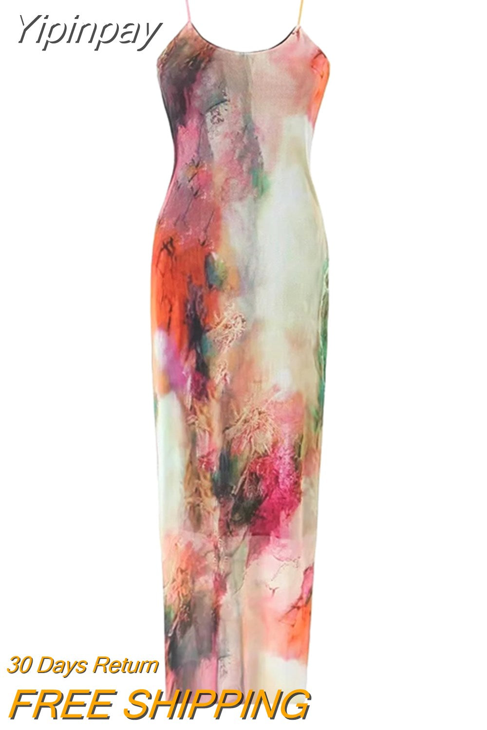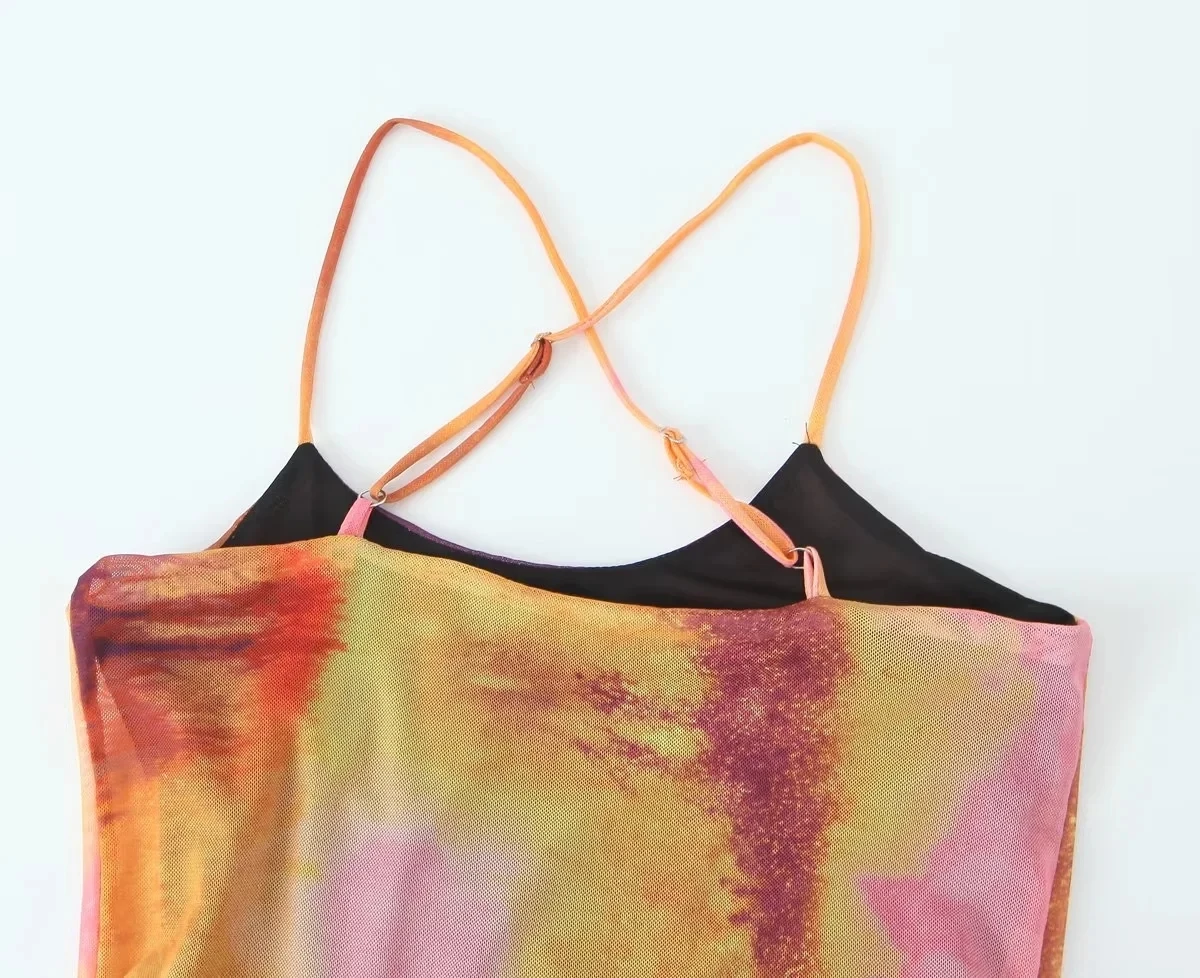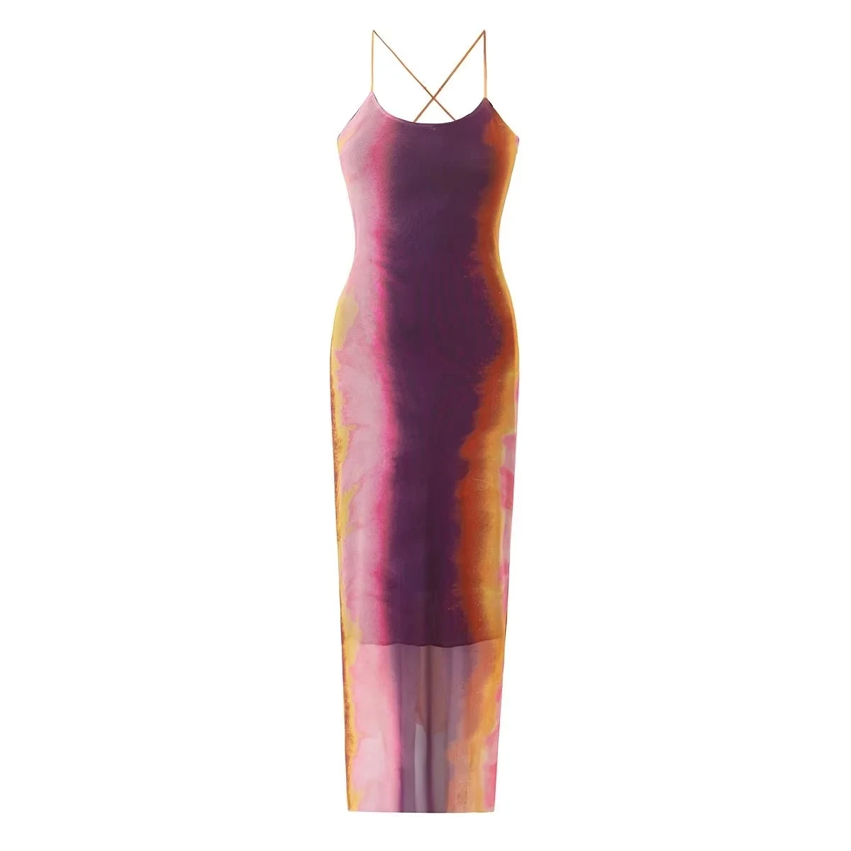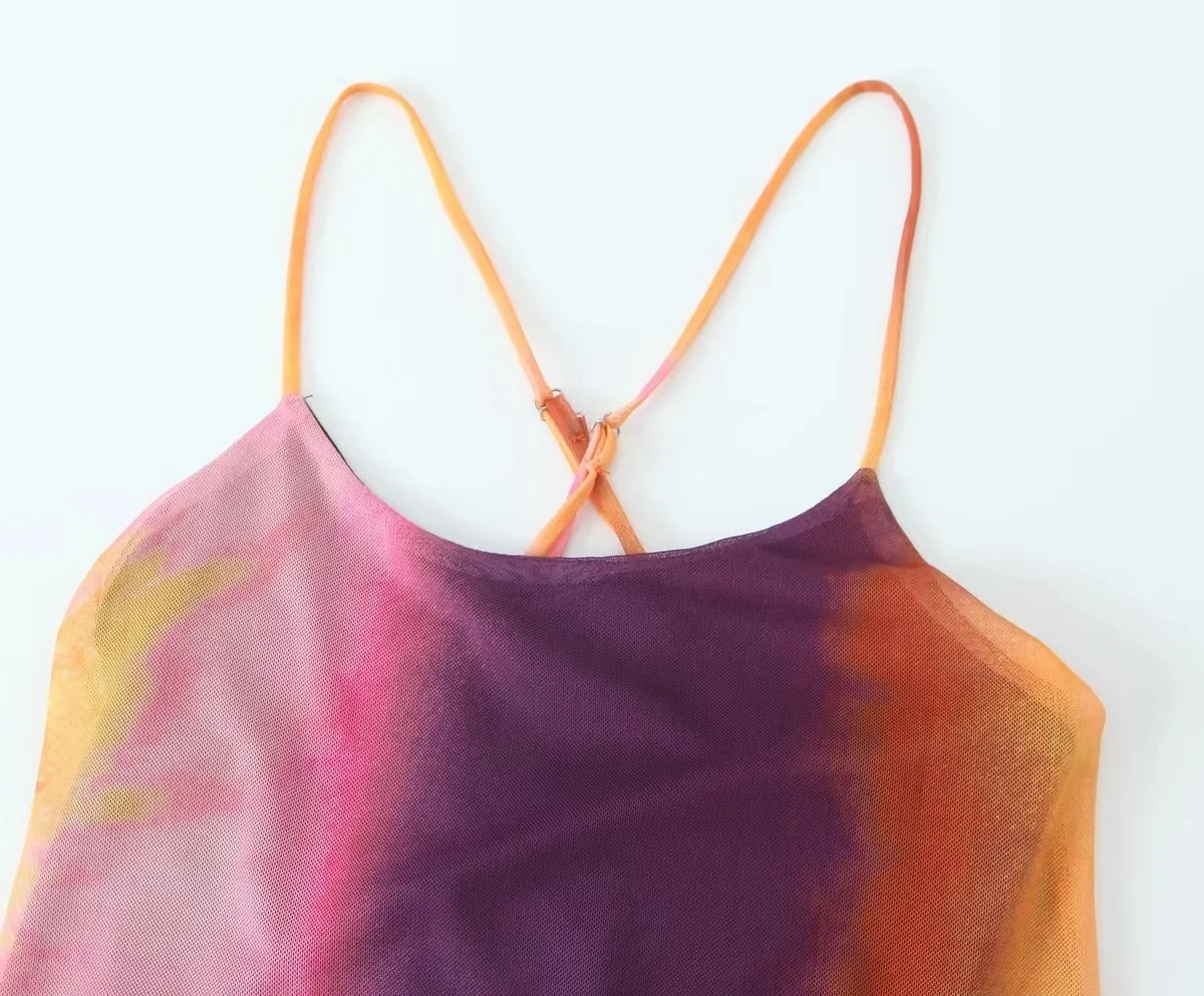 Yipinpay Tie Dye Tulle Long Dress Women Summer Slip Bodycon Dress 2023 Backless Sexy Summer Dresses Midi Evening Party Dresses