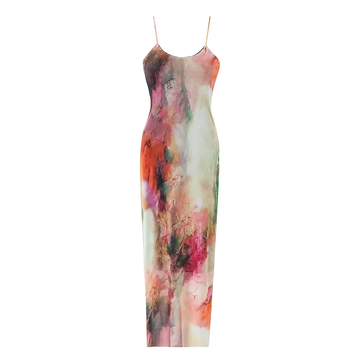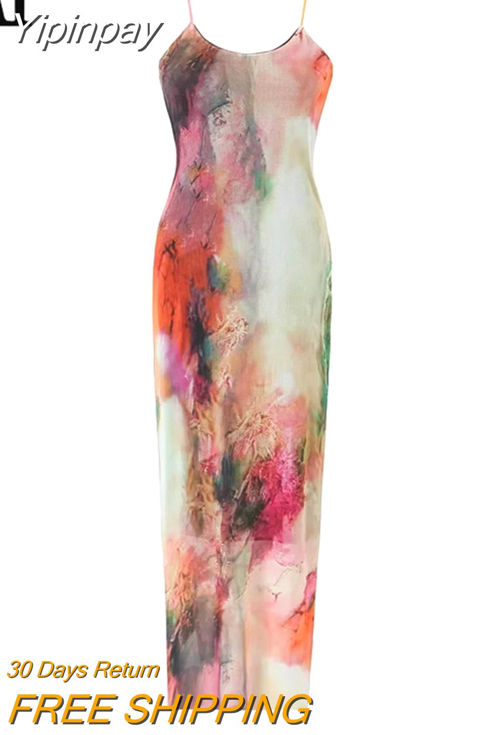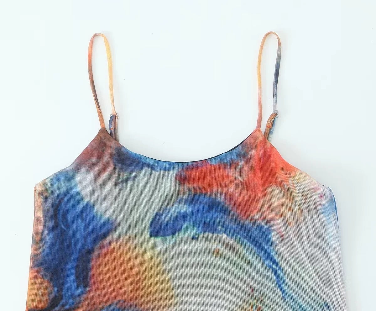 Yipinpay Tie Dye Tulle Long Dress Women Summer Slip Bodycon Dress 2023 Backless Sexy Summer Dresses Midi Evening Party Dresses