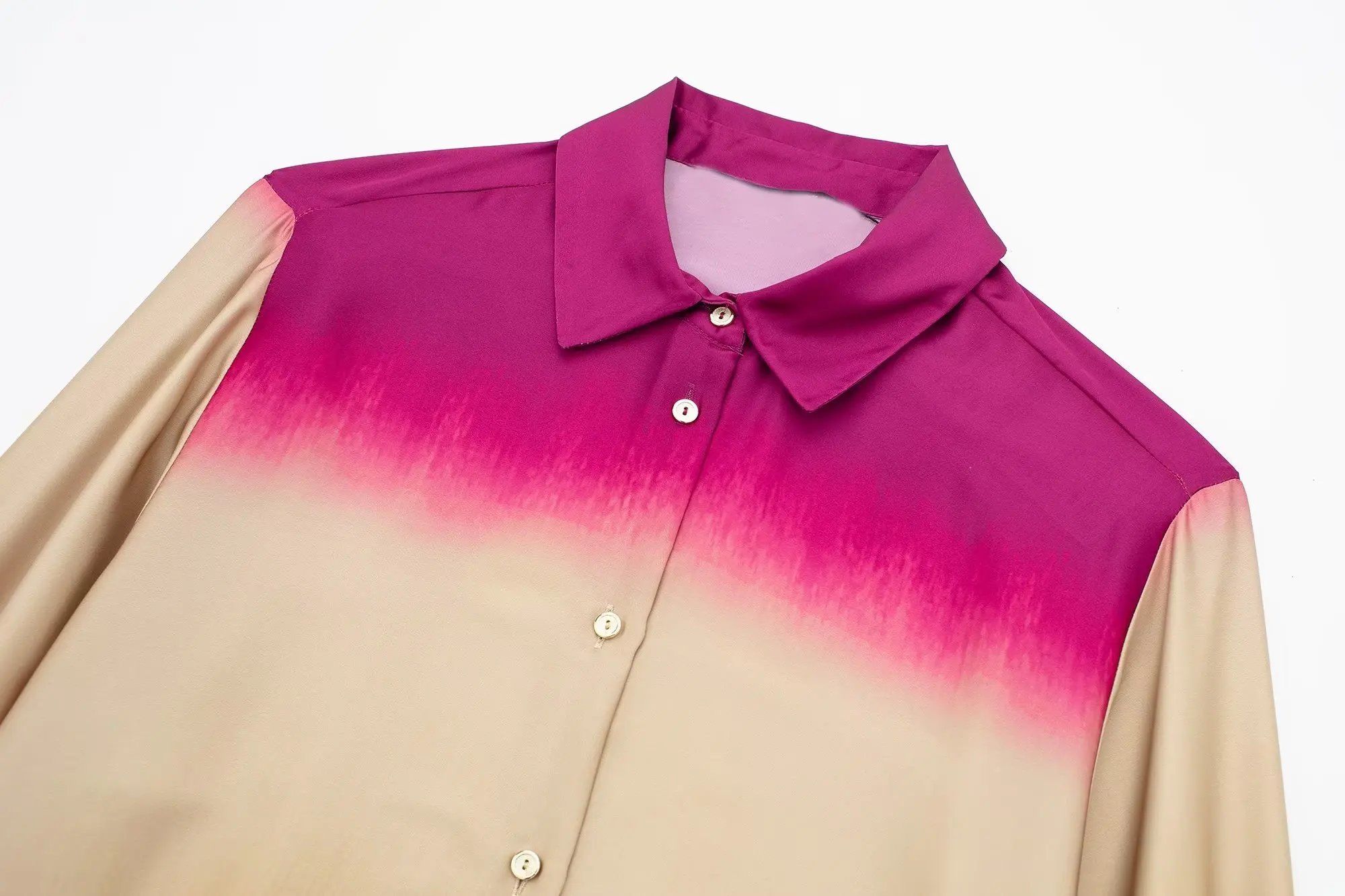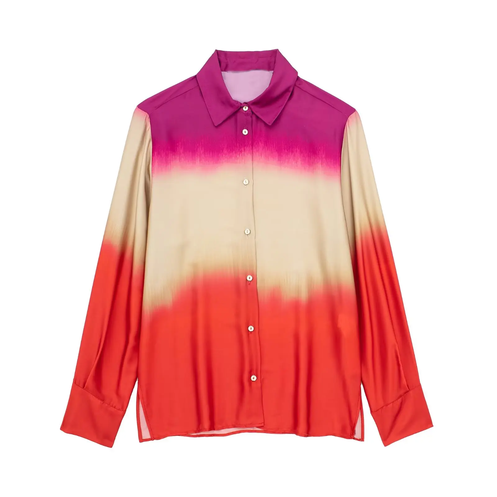 Yipinpay Tie Dye Women Shirts And Blouses Satin Long Sleeve Top Women Loose Summer Blouses Woman 2023 Streetwear Button Up Shirt
