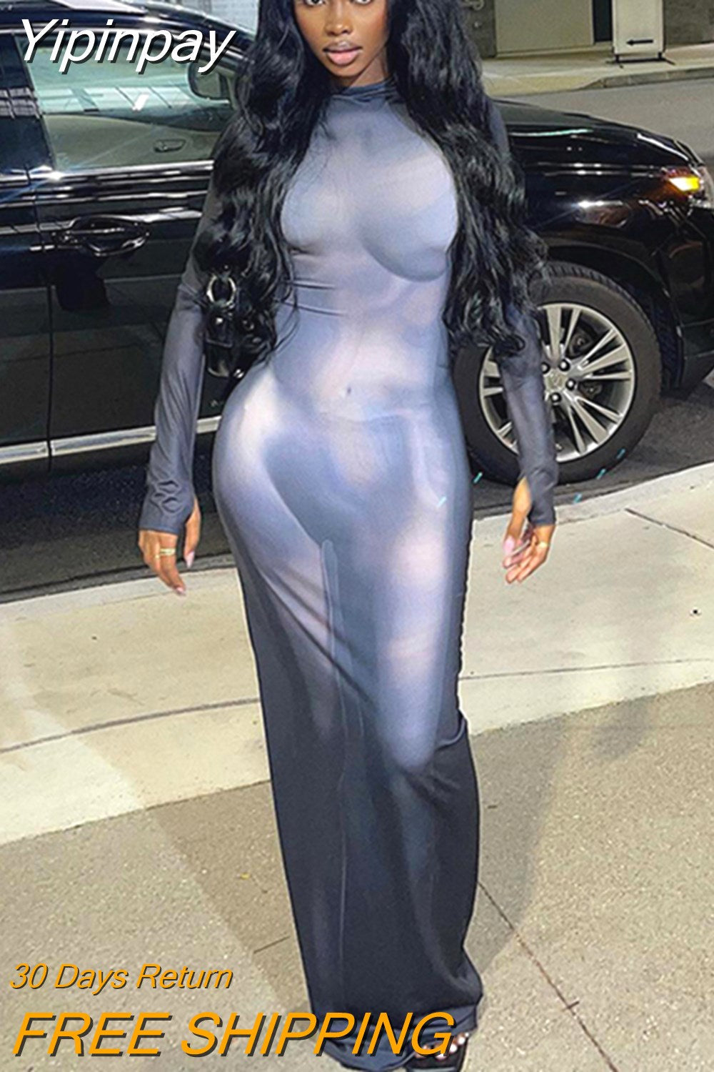 Yipinpay Tie Dyed Print Long Sleeve Bodycon Maxi Dresses For Women 2023 Spring Fall Elegant Party Outfit Fairy Grunge Y2K Clothes