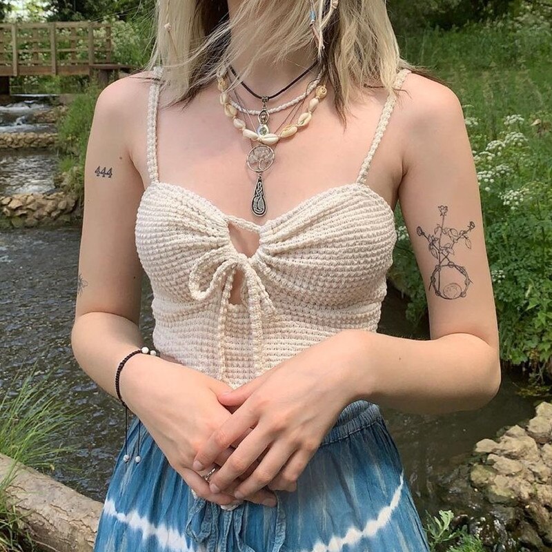 yipinpay Top Corset Women Hollow Out Camis Sleeveless Drawstring Crop Top Slim Female Clothing Aesthetic Streetwear Tops