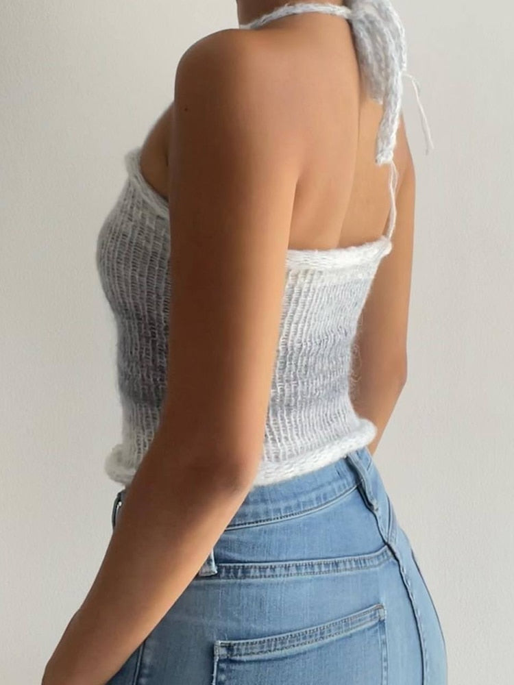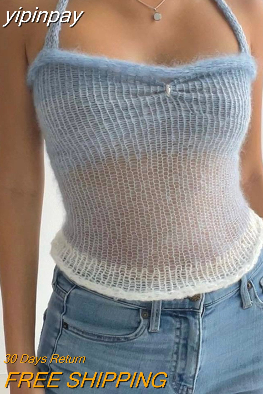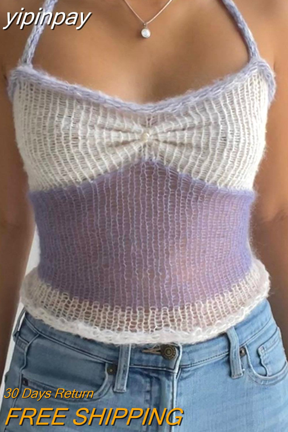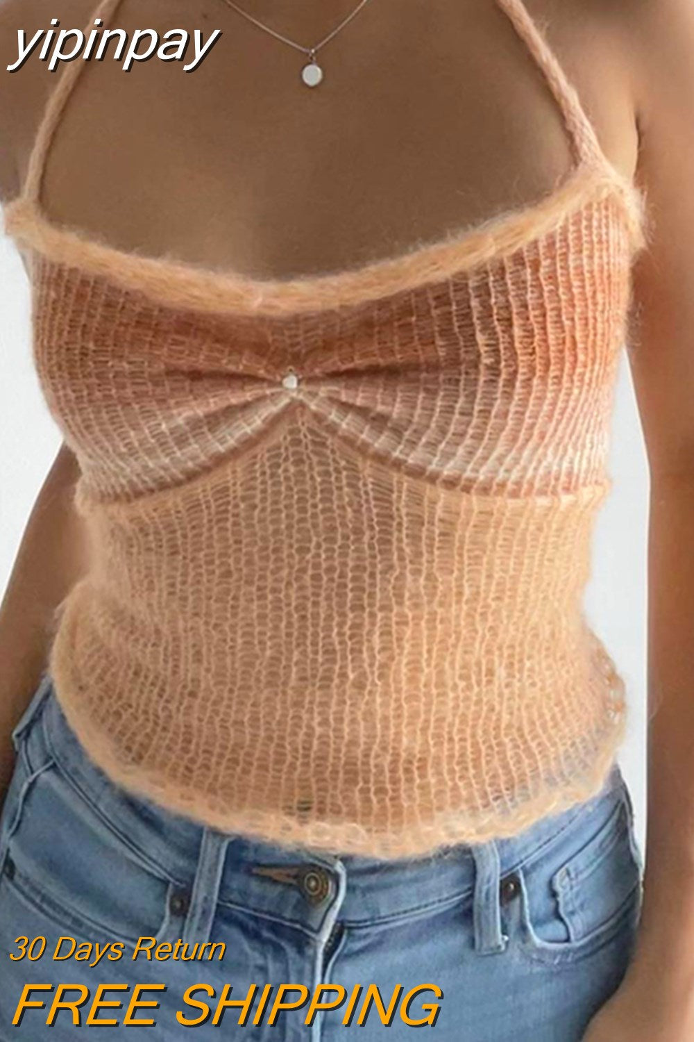 yipinpay Top Women Y2K Crop Top Backless Tank Top Knit Vest Summer Clothes Streetwear Skinny Sleeveless Cami Top Off Shoulder Top
