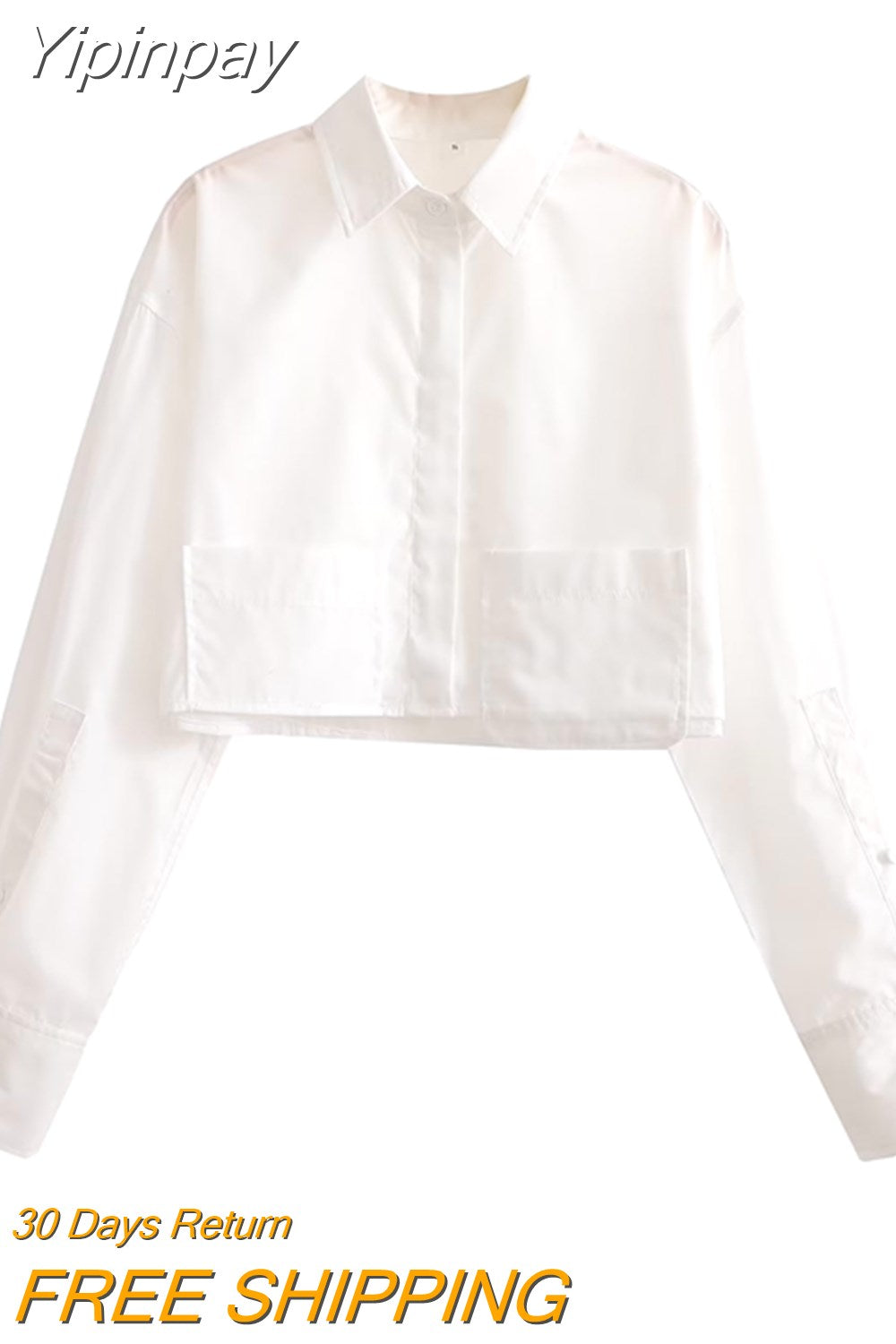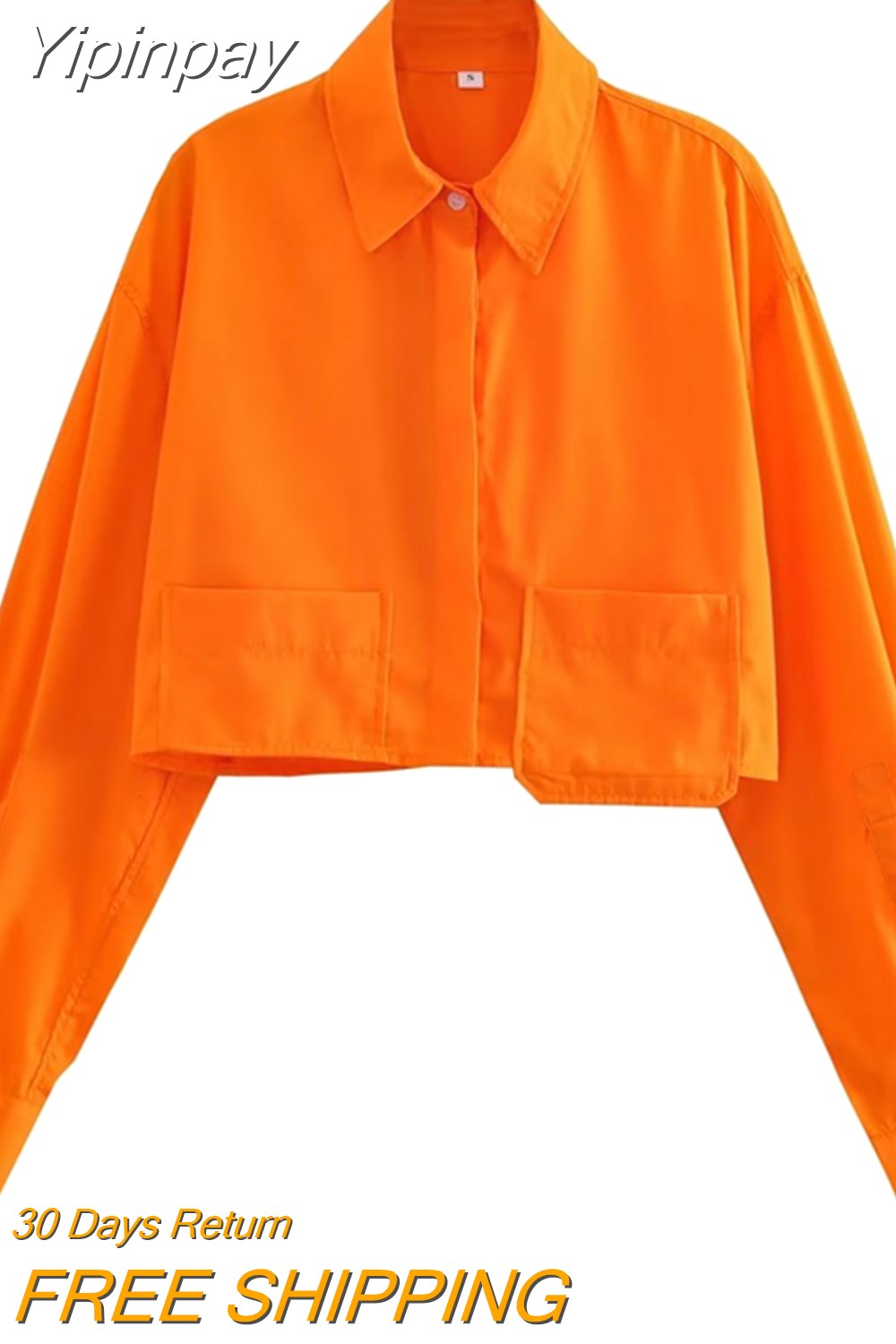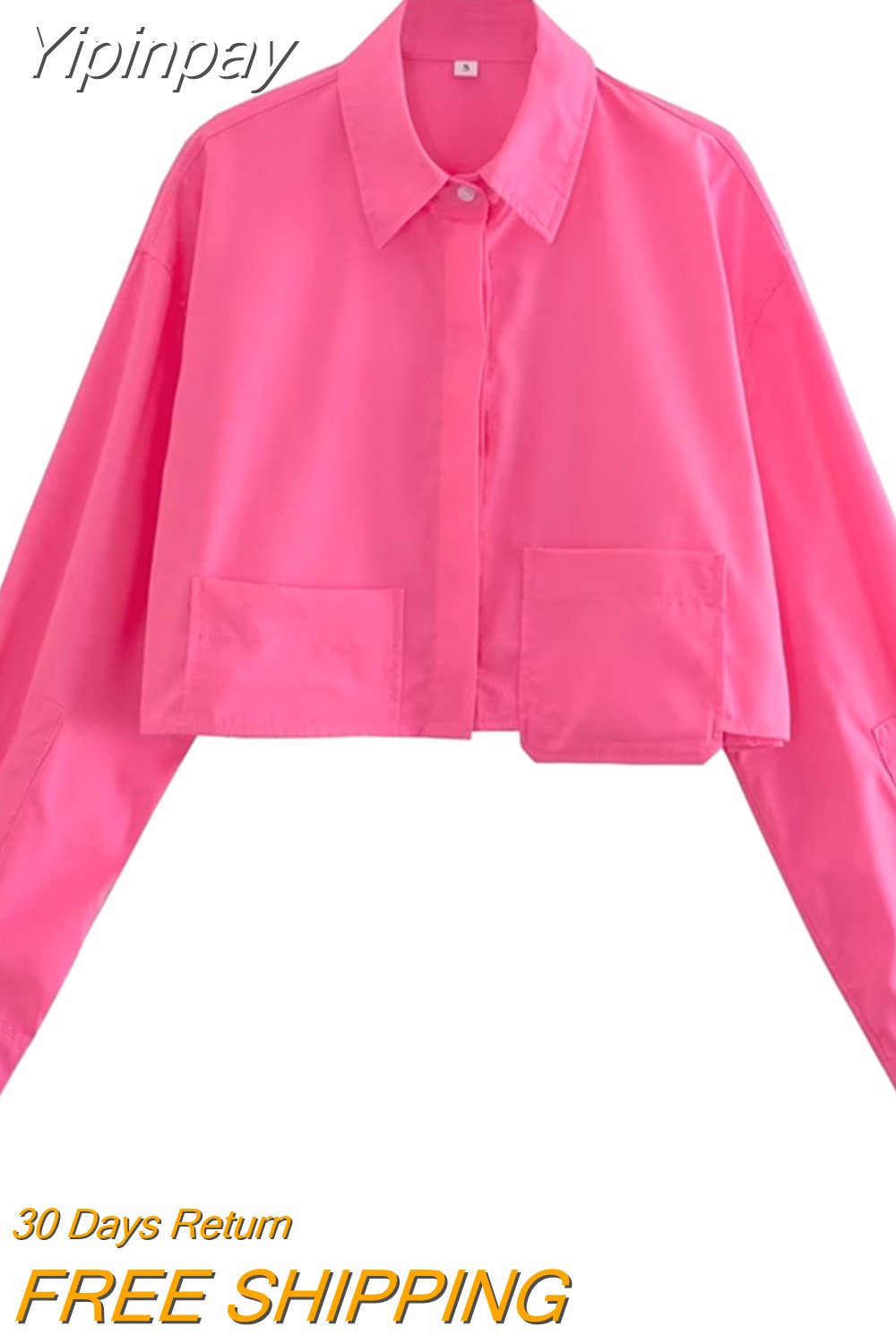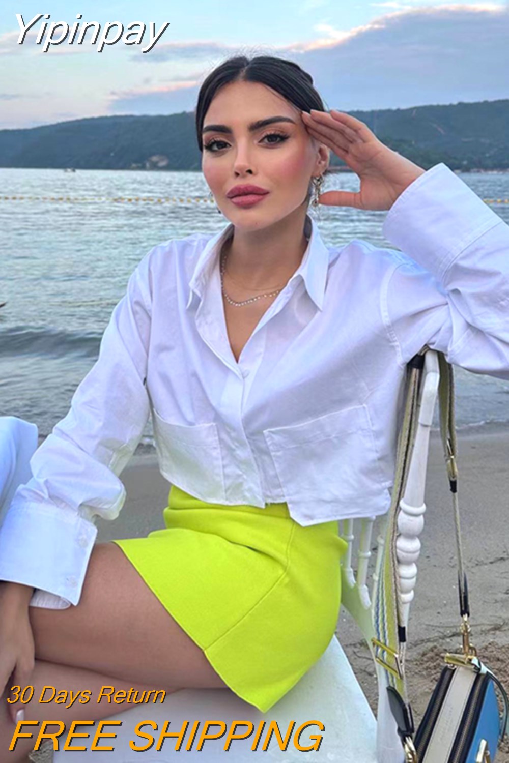 Yipinpay TRAF Fashion Striped Women's Shirt 2023 Summer Chic Woman Blouse Long Sleeve Tops Ladies Pockets Short Shirts and Blouses