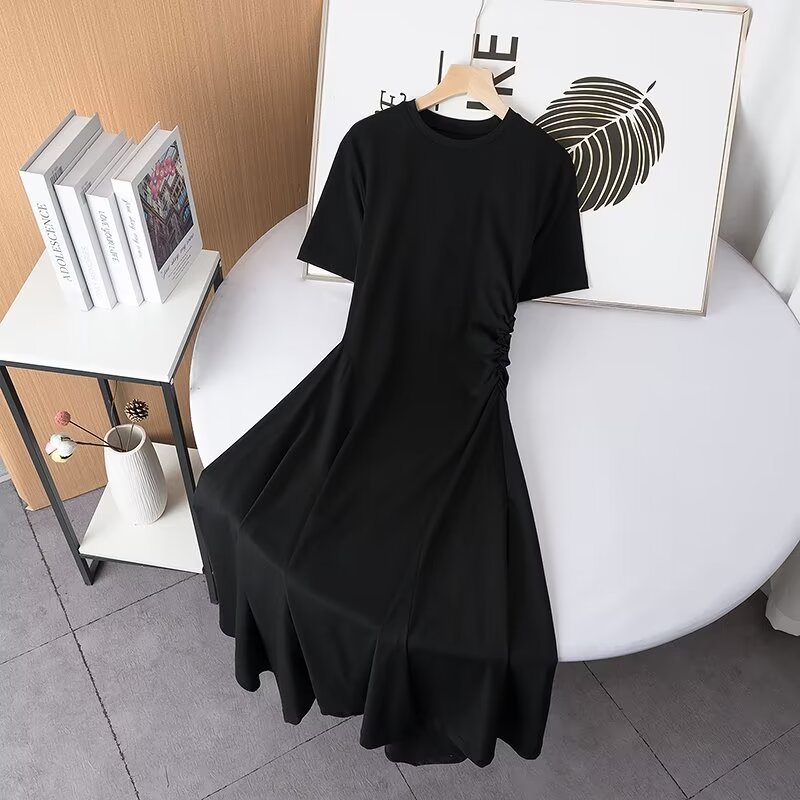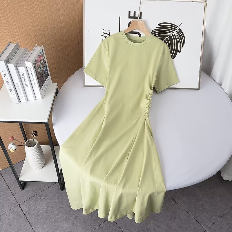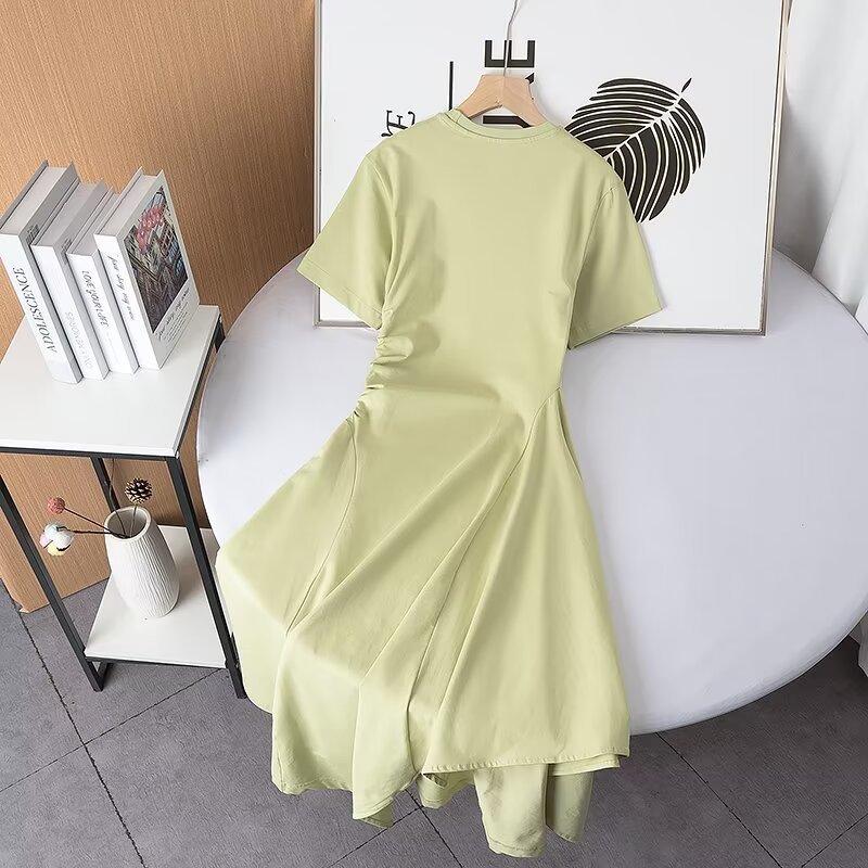 Yipinpay Two-Color Short-Sleeved Pleated Irregular Dress In Spring