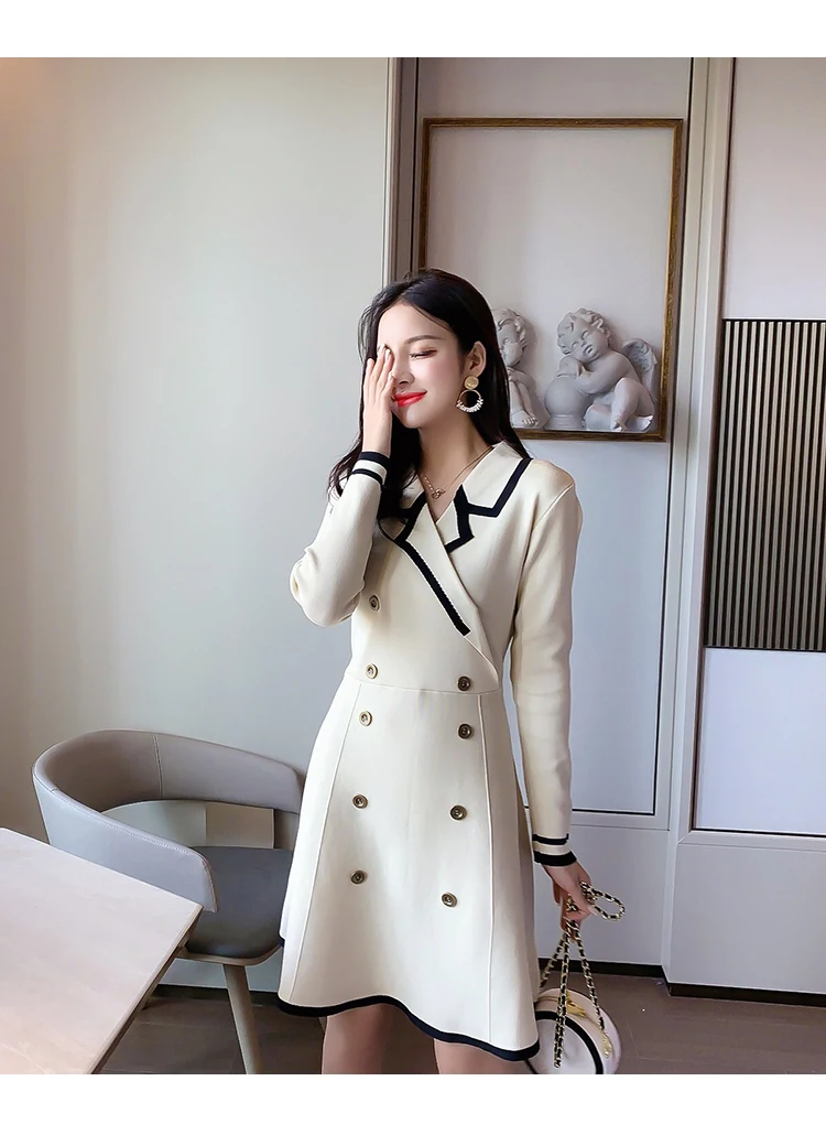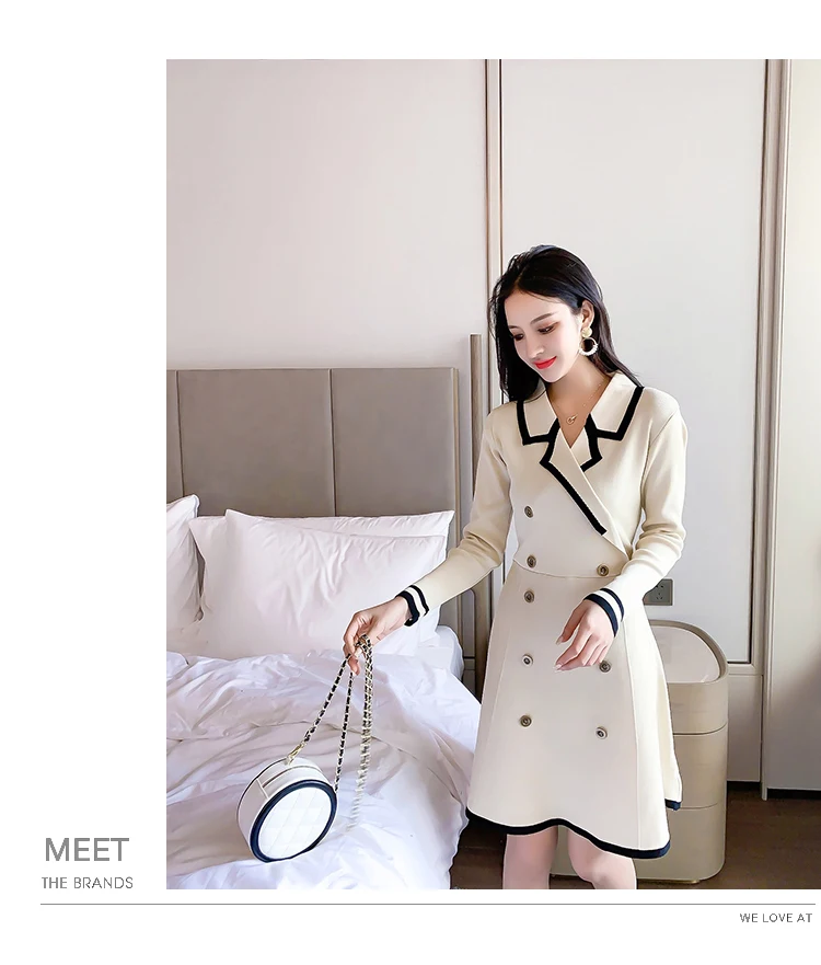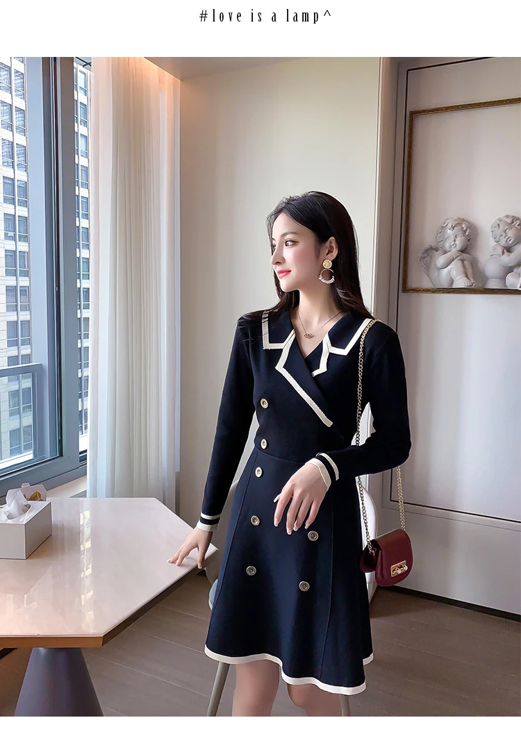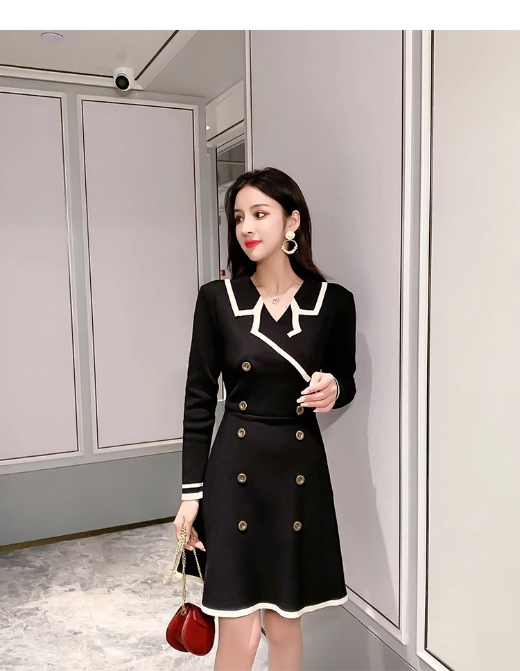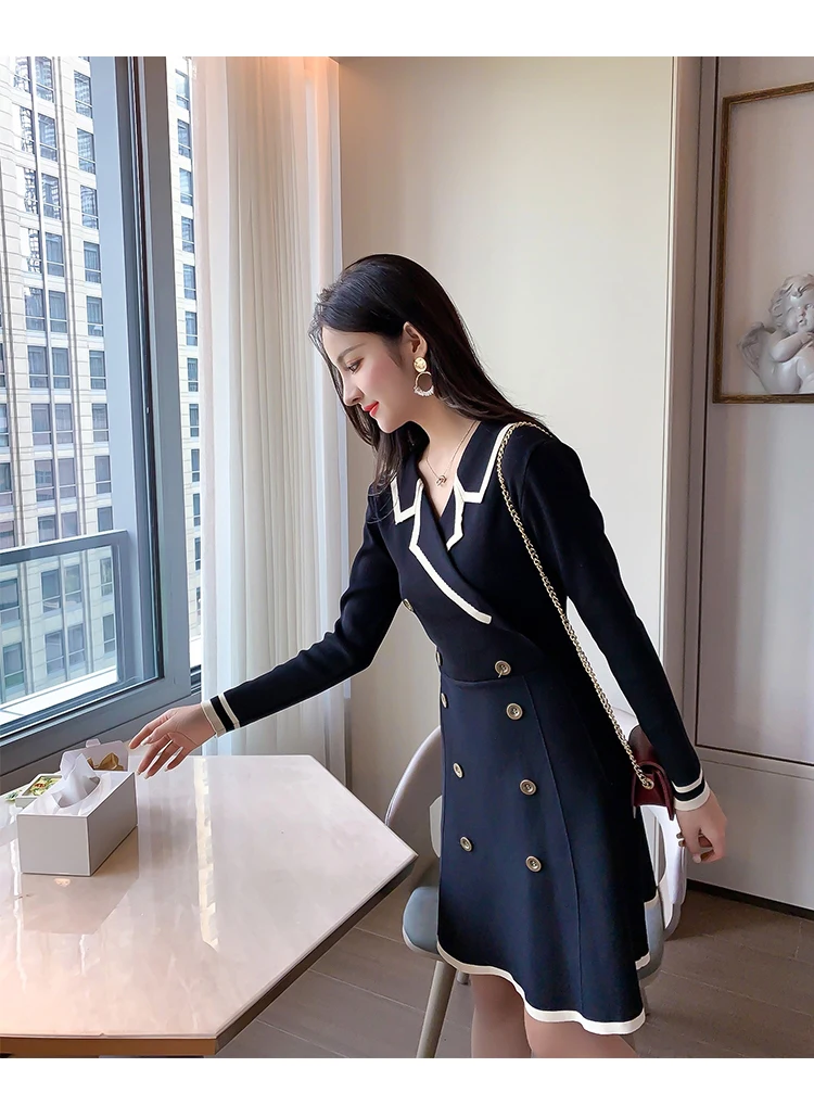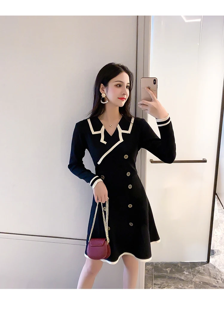Yipinpay V Neck Long Sleeve Knitted Party Dress women Autumn Korean French Vintage Vestidos Elegantes Pullover Robe Chemise Femme
