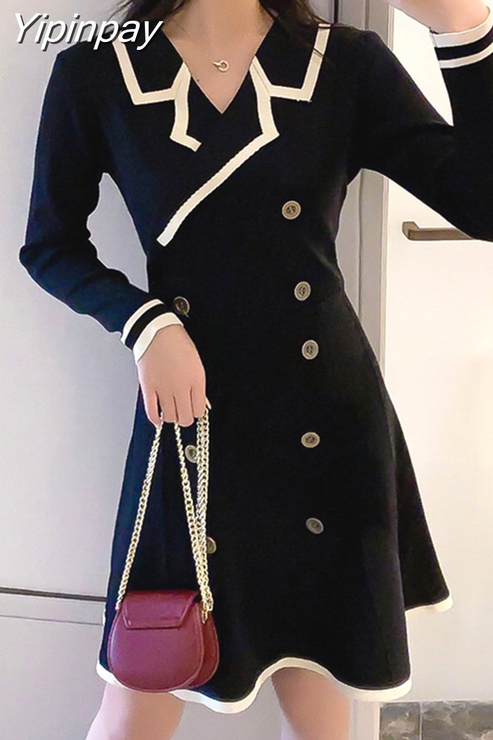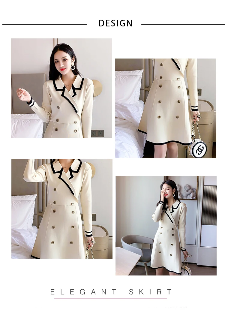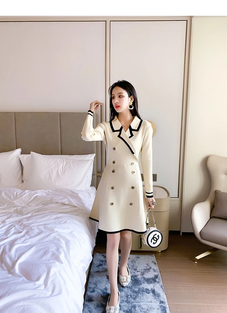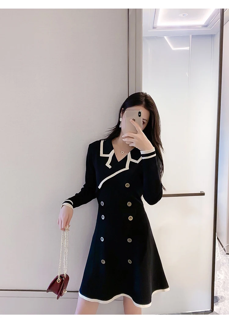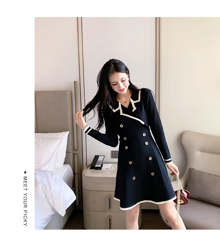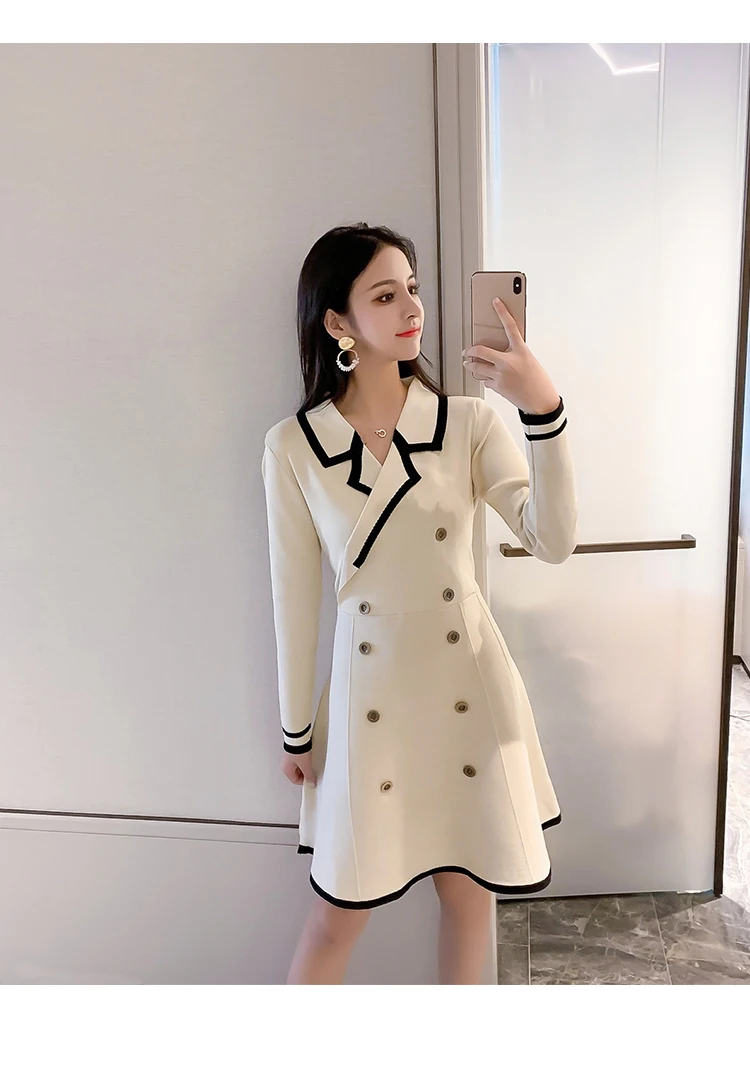 Yipinpay V Neck Long Sleeve Knitted Party Dress women Autumn Korean French Vintage Vestidos Elegantes Pullover Robe Chemise Femme