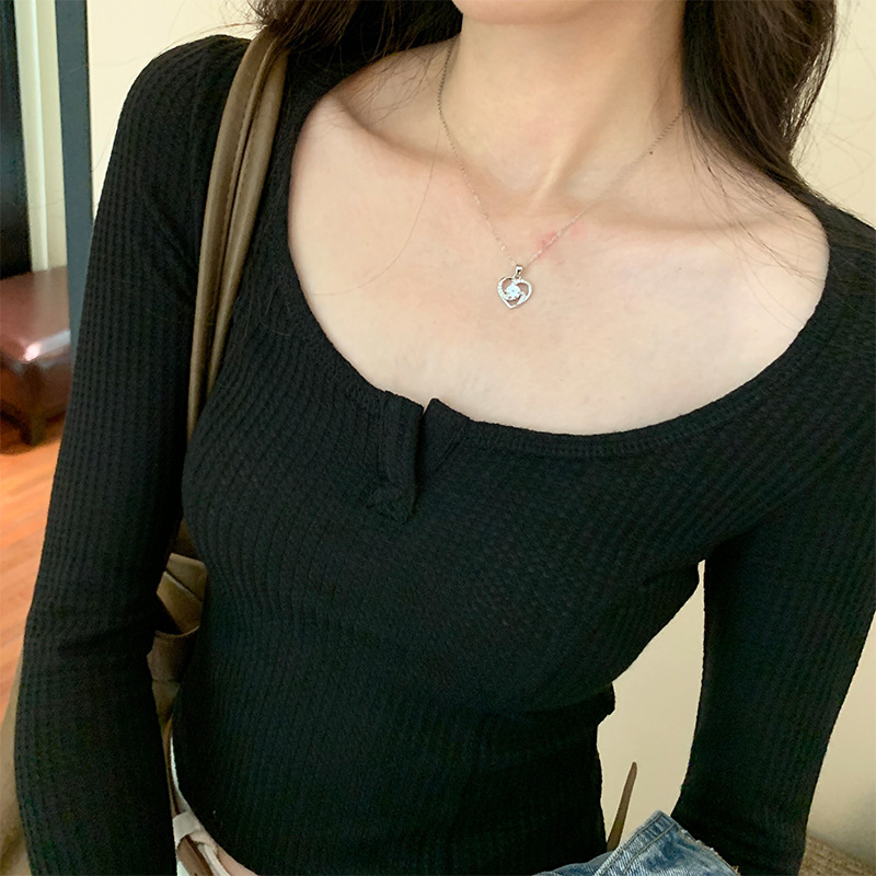 Yipinpay V Neckline Short Threaded Long-Sleeved T-Shirt Women's Autumn New Bottomed Shirt Design Niche Blouse