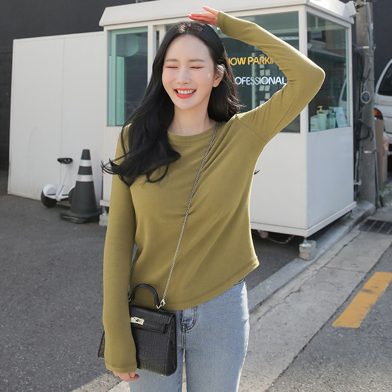 Yipinpay Velvet Bottomed Blouse With Autumn And Winter Round Collar, Slim, Long-Sleeved T-Shirt, Foreign Style And Velvet Polished Blouse