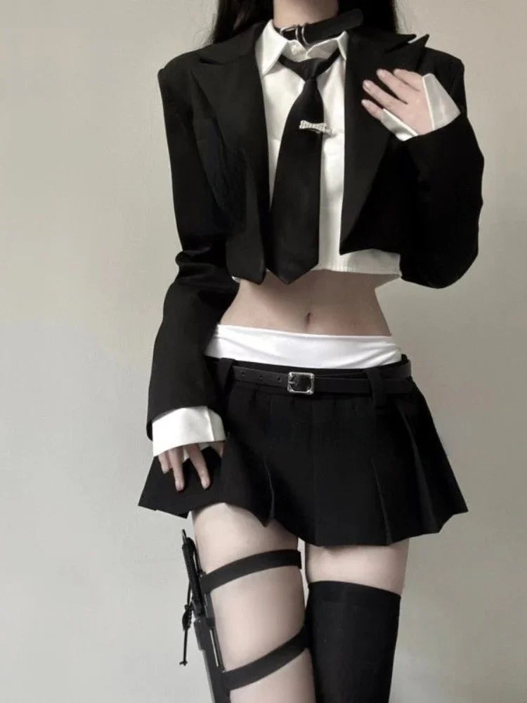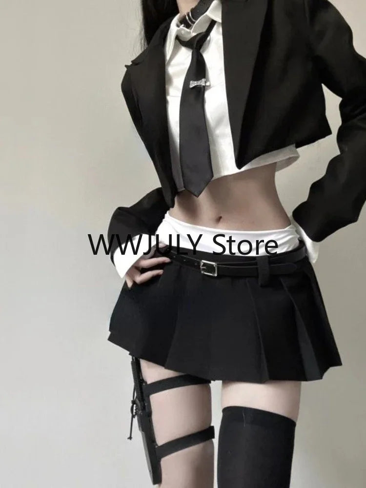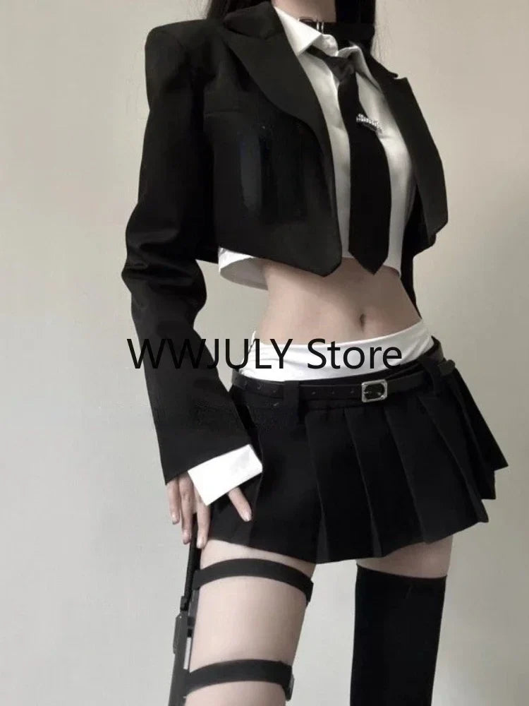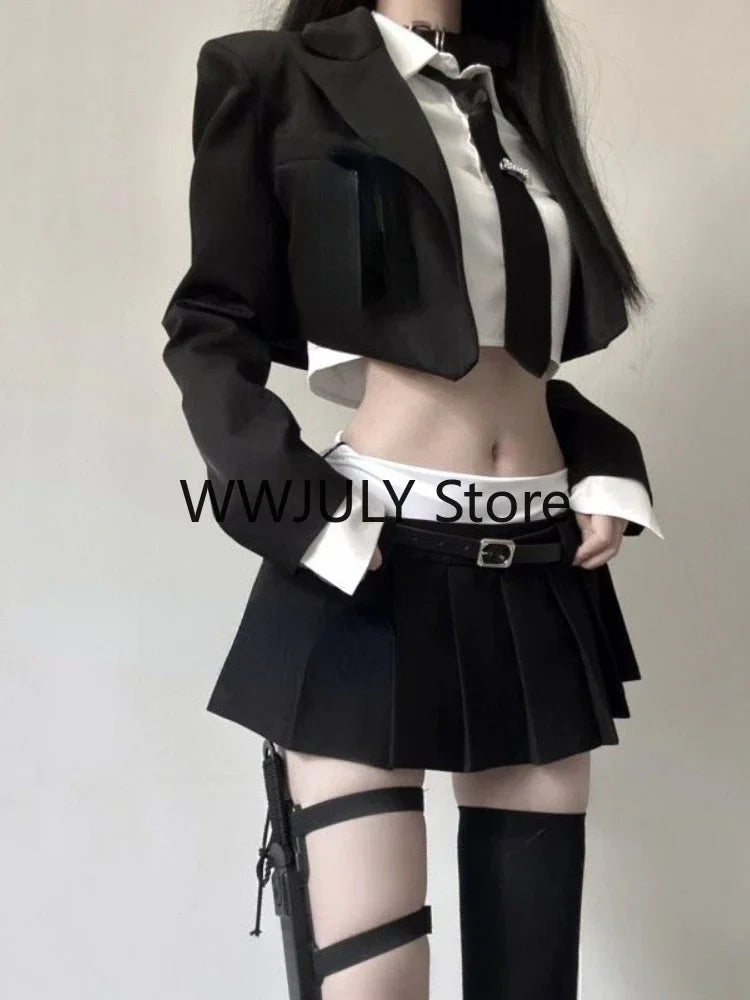 Yipinpay Vintage 3 Piece Set Skirt Woman Black Short Blazers + Casual Shirt + Slim Mini Skirt Party Korean Fashion Suit Female Chic