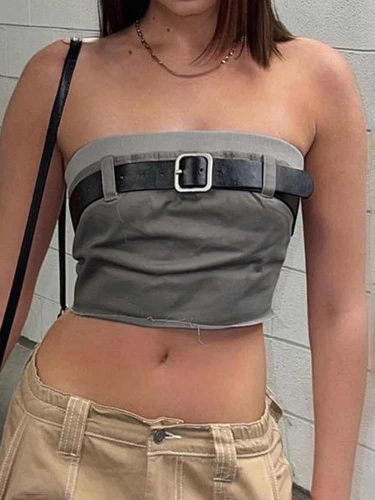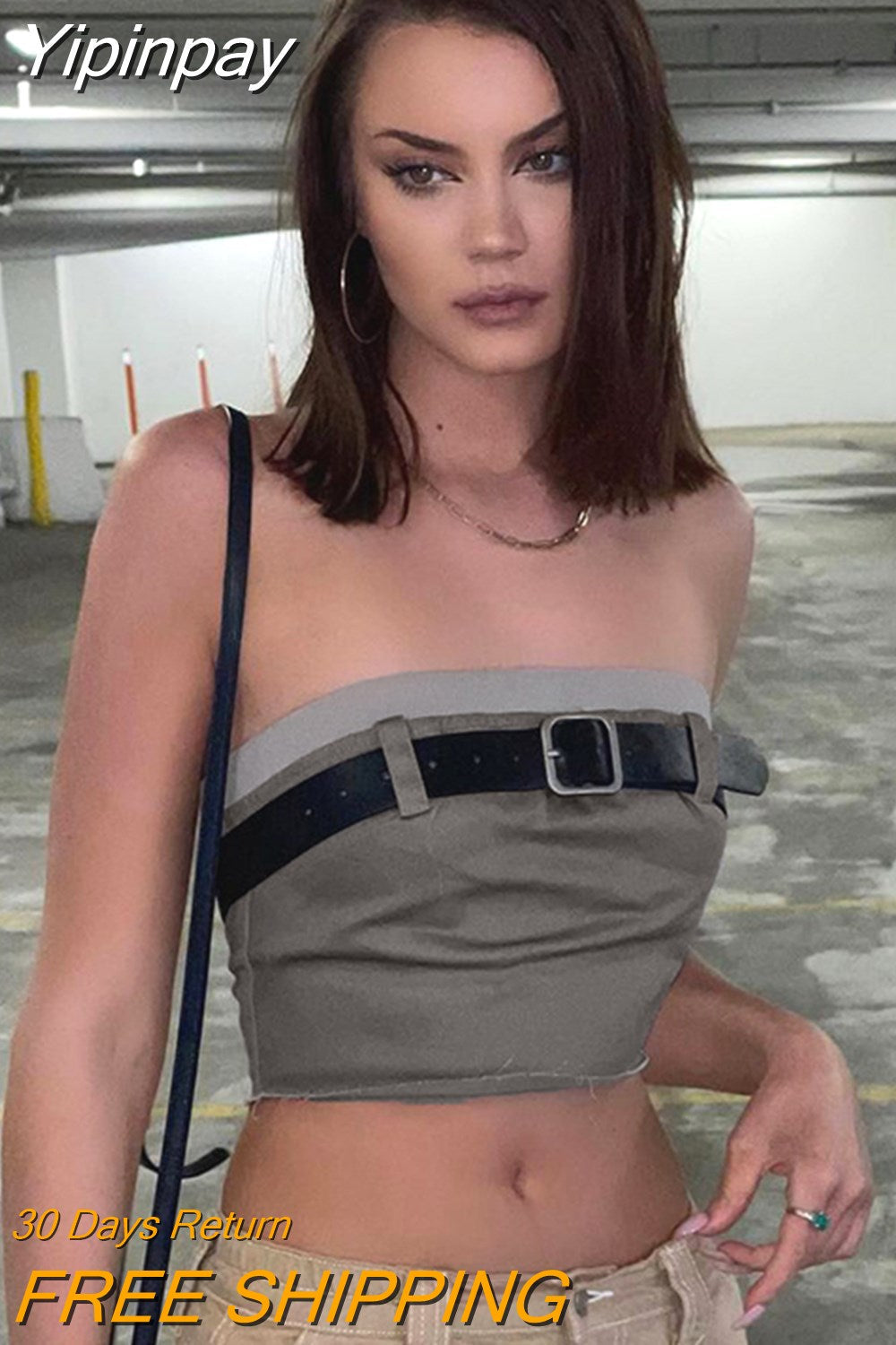 Yipinpay Vintage 90s Patchwork Crop Tops Summer Fashion Chic Vest Street Style E-girl Aesthetic Women Sleeveless Strapless Tanks
