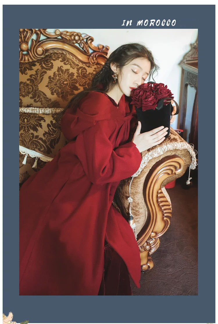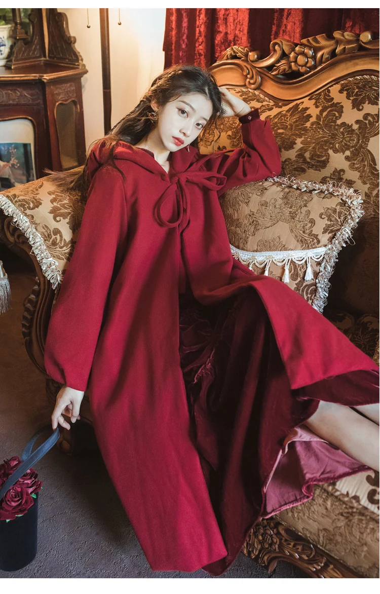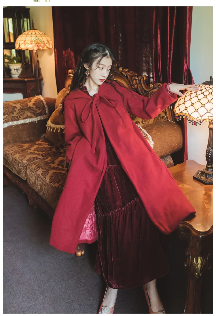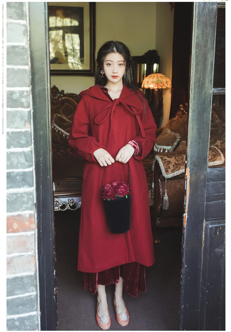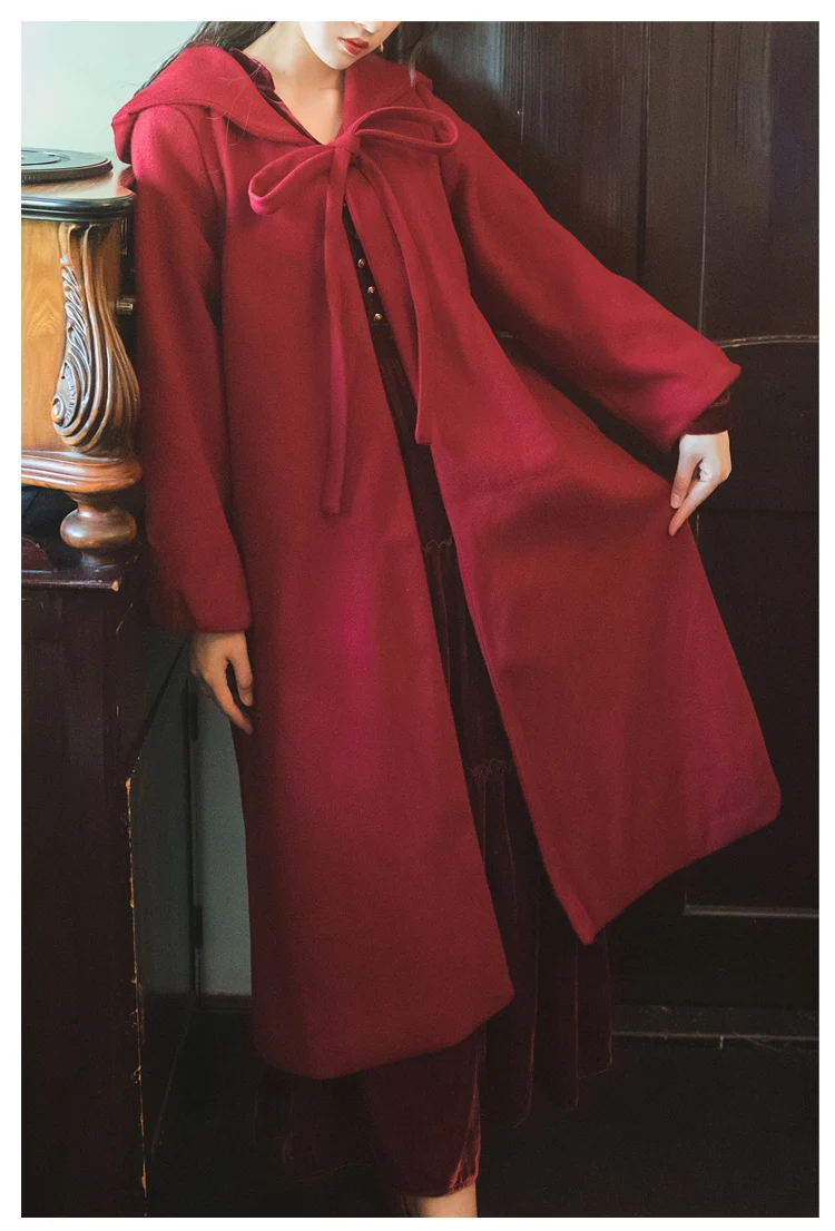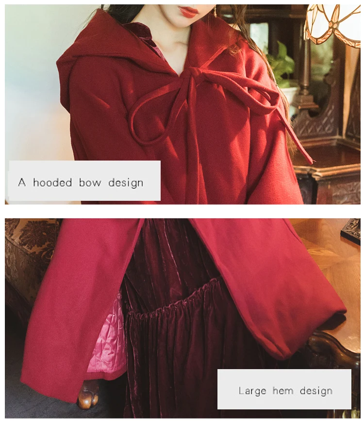 Yipinpay Vintage Autumn Winter Long Sleeve Women Coat Woolen Cloth Hooded Cloak Loose Cotton Padded Warm Retro Female Overcoat