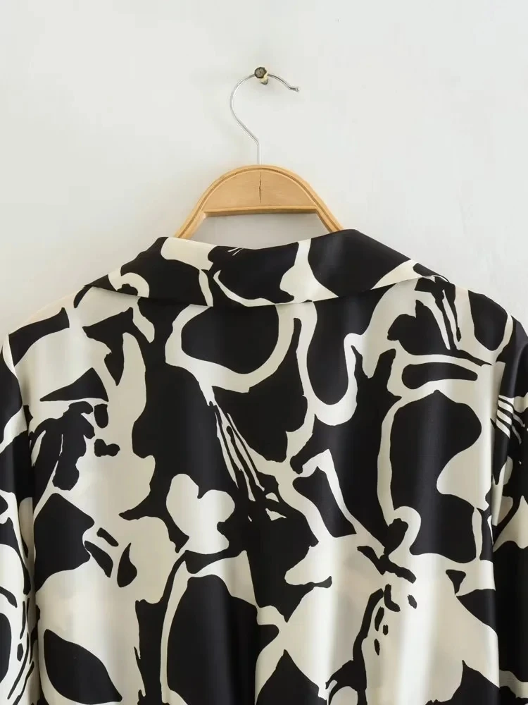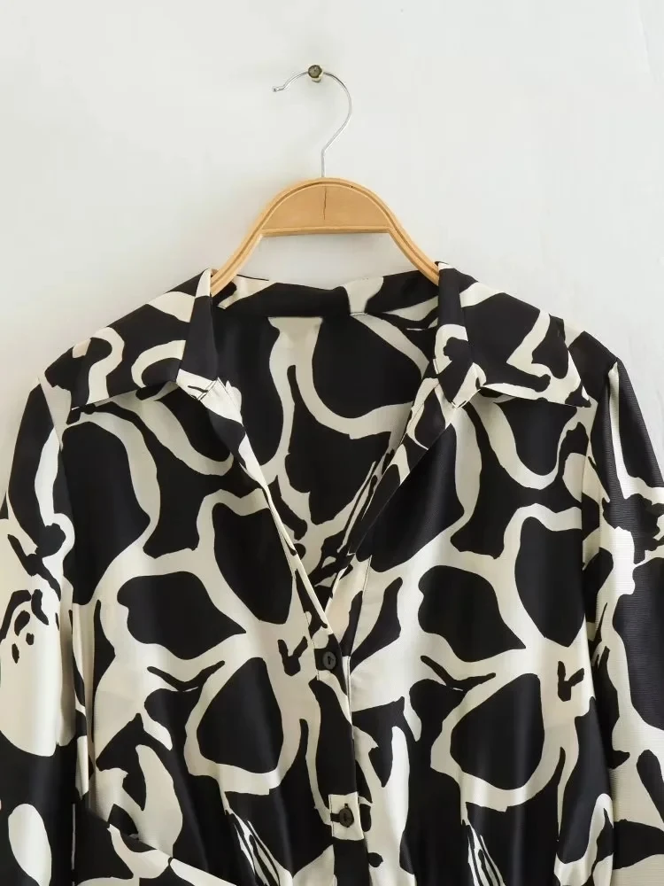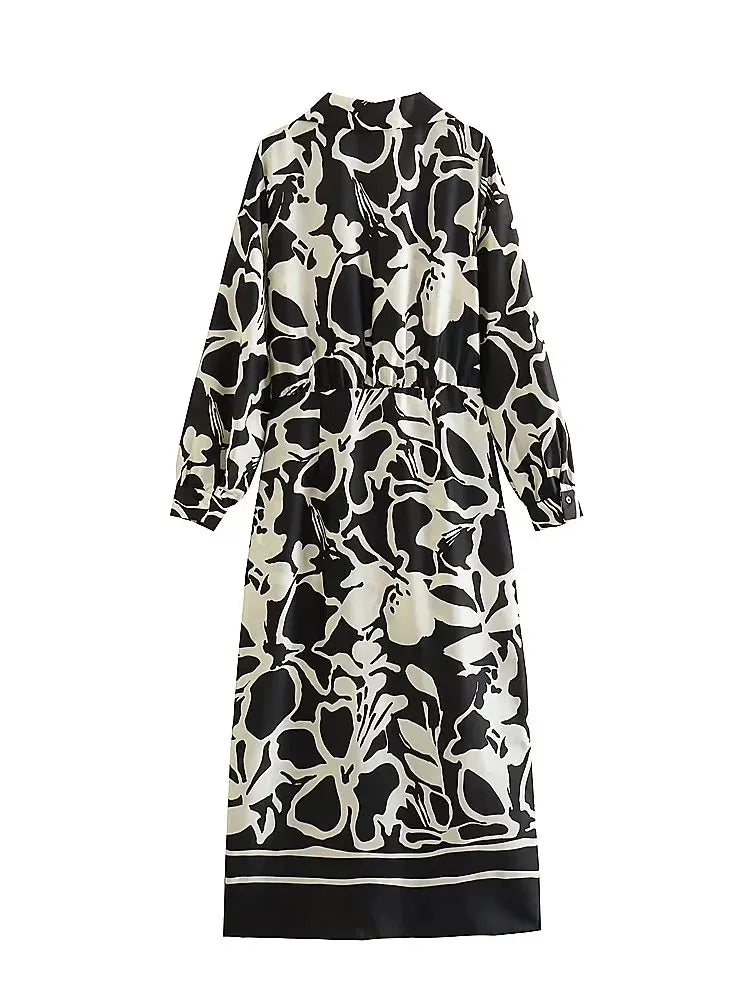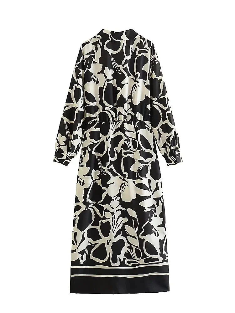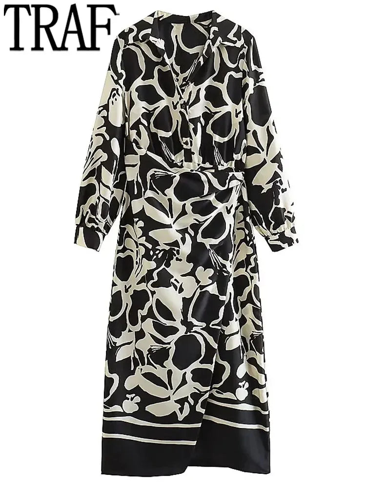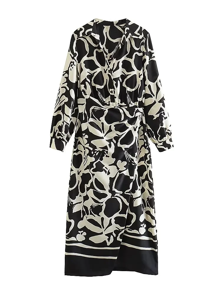 Yipinpay Vintage Print Long Dress Women Wrap Black Shirt Dress Woman Long Sleeve Elegant Dresses For Women 2023 Midi Party Dresses