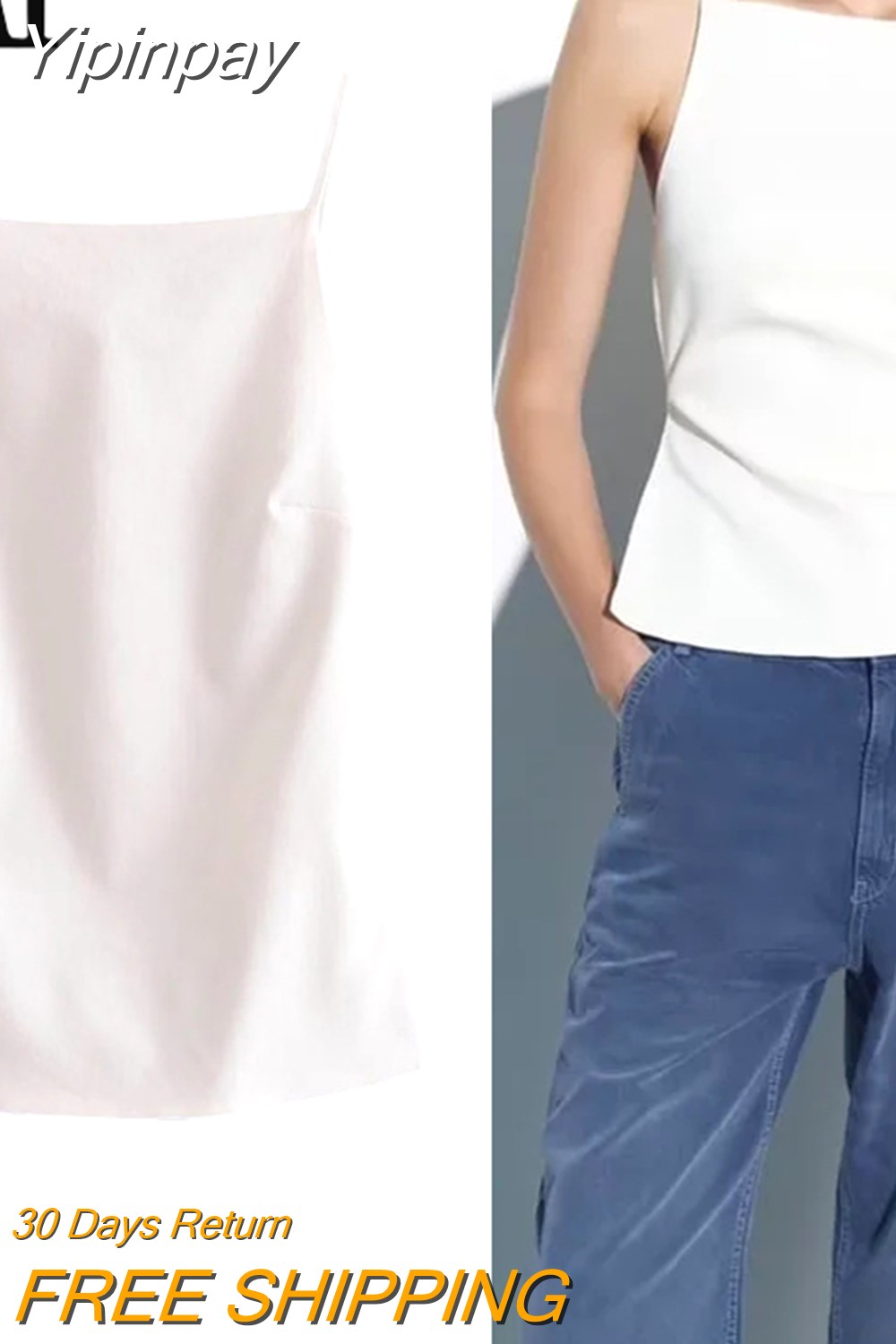 Yipinpay White Backless Top Female Black Cami Top Women Sleeveless Summer Top Woman Party Night Sexy Tops Woman Fashion Camisole