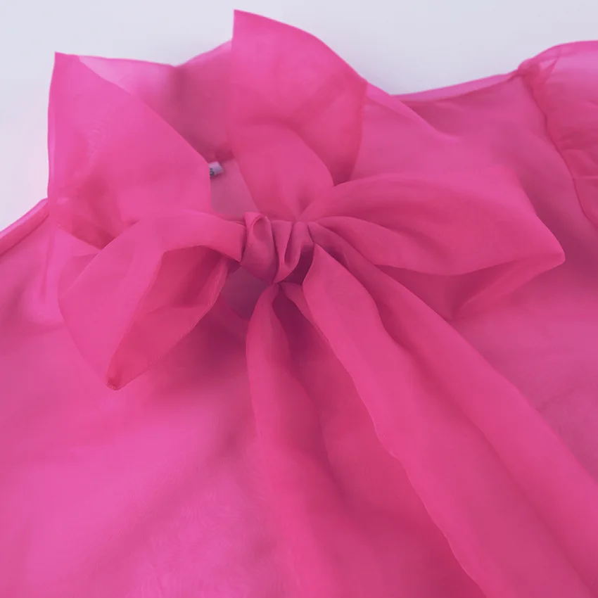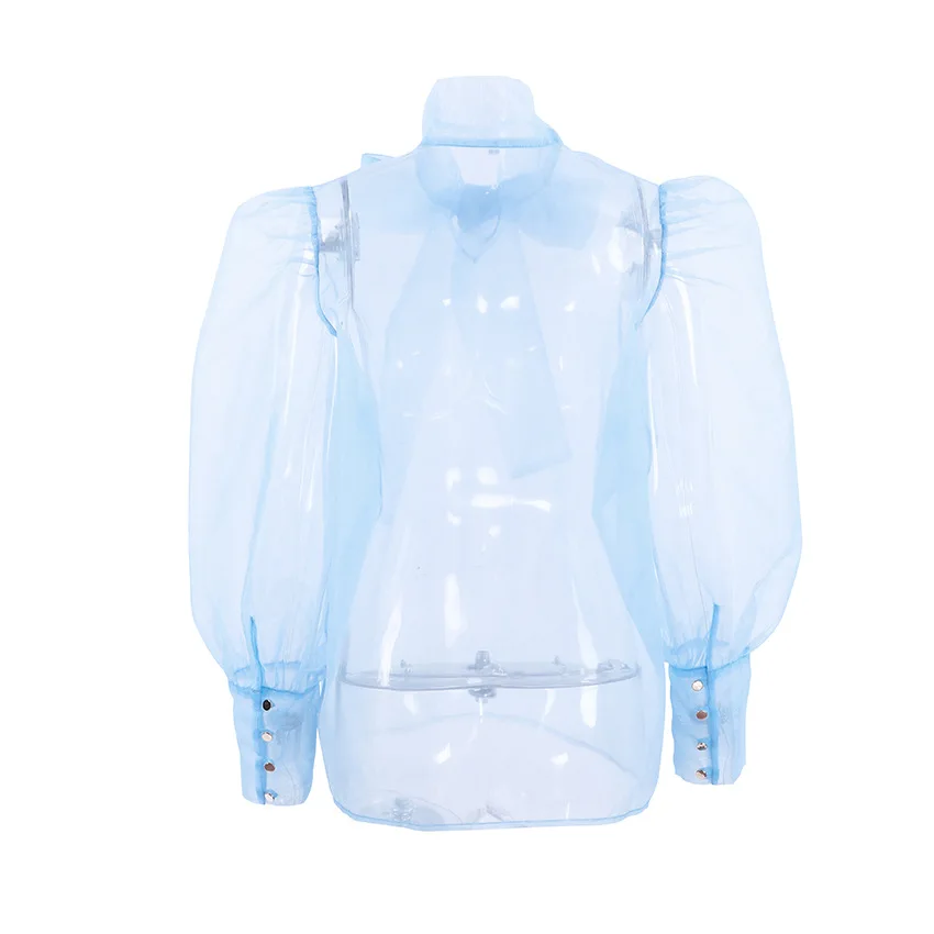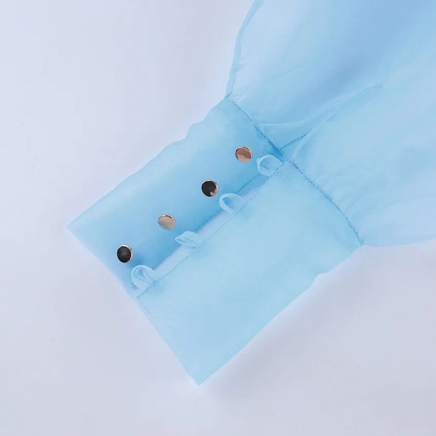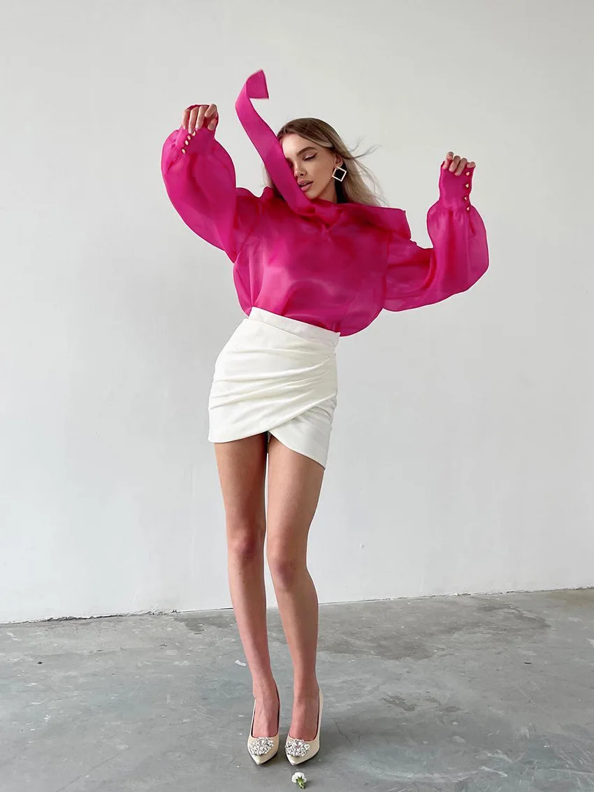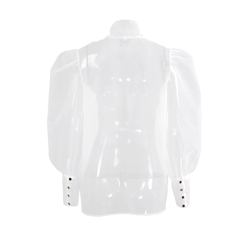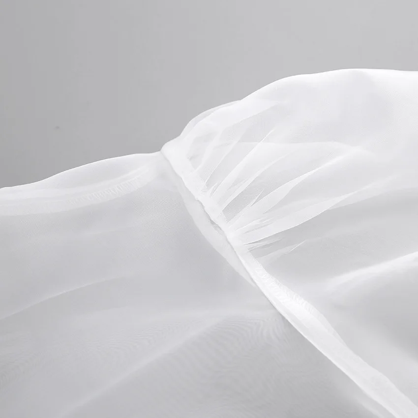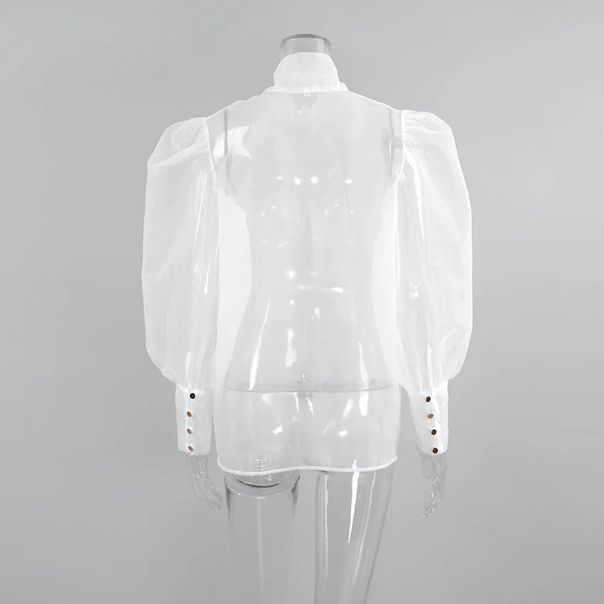 Yipinpay White Chiffon Top Shirts For Women Elegant Long Lantern Sleeve Mesh T-shirt See-Through Blouse Bow Sheer Ladies Shirts