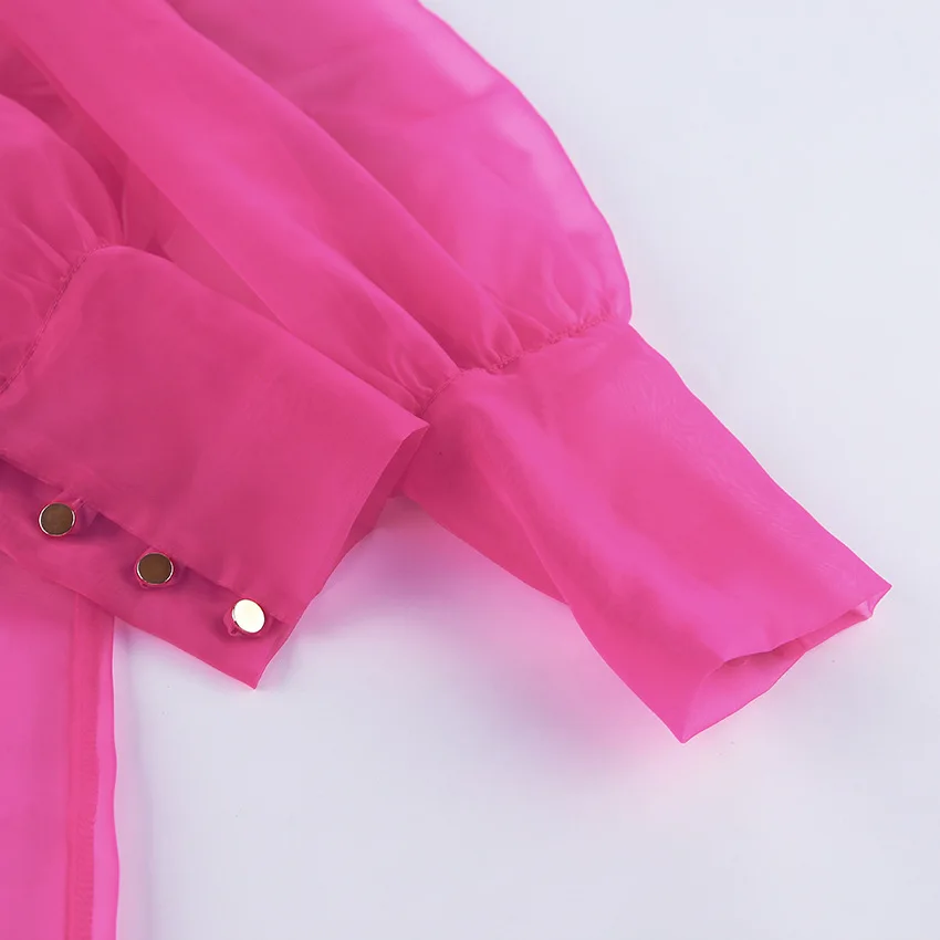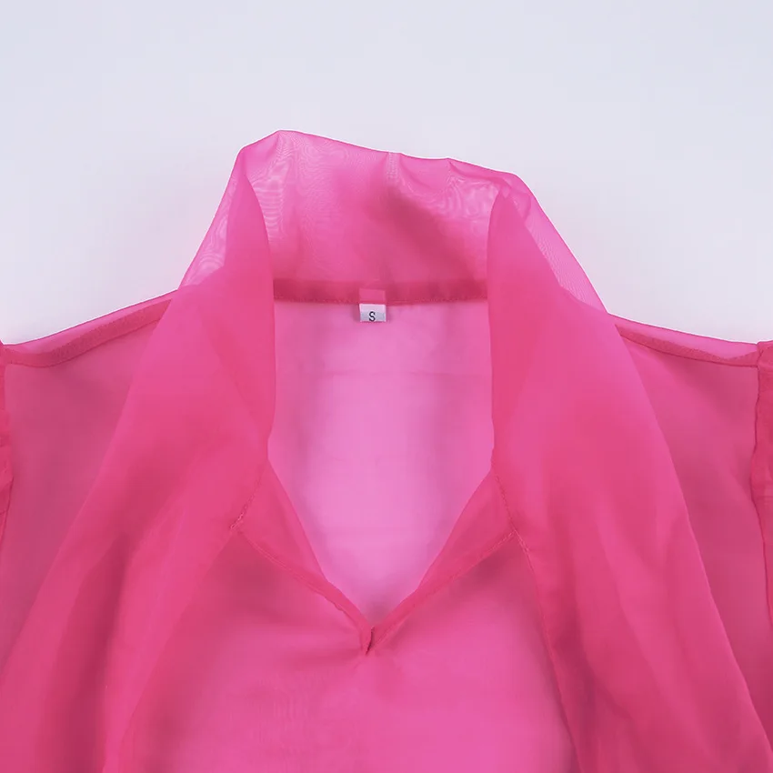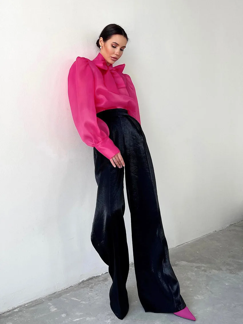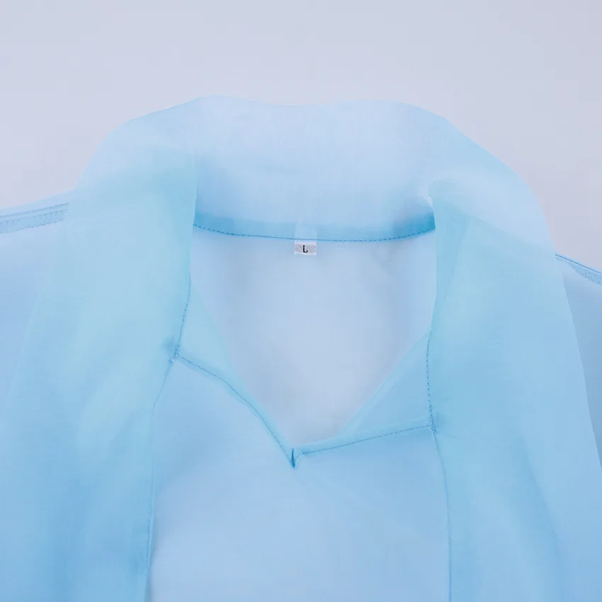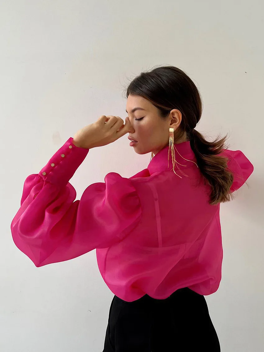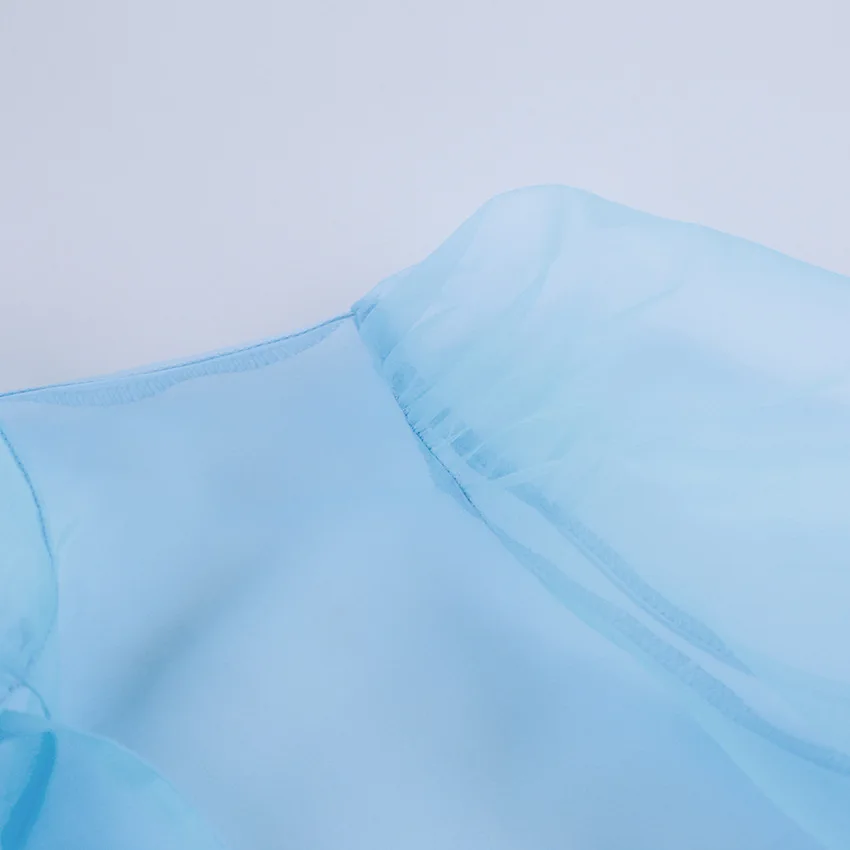 Yipinpay White Chiffon Top Shirts For Women Elegant Long Lantern Sleeve Mesh T-shirt See-Through Blouse Bow Sheer Ladies Shirts