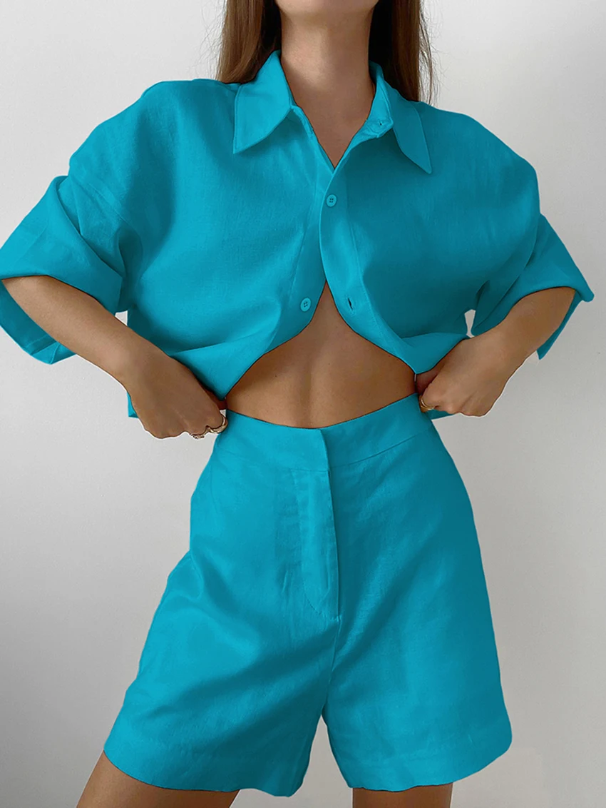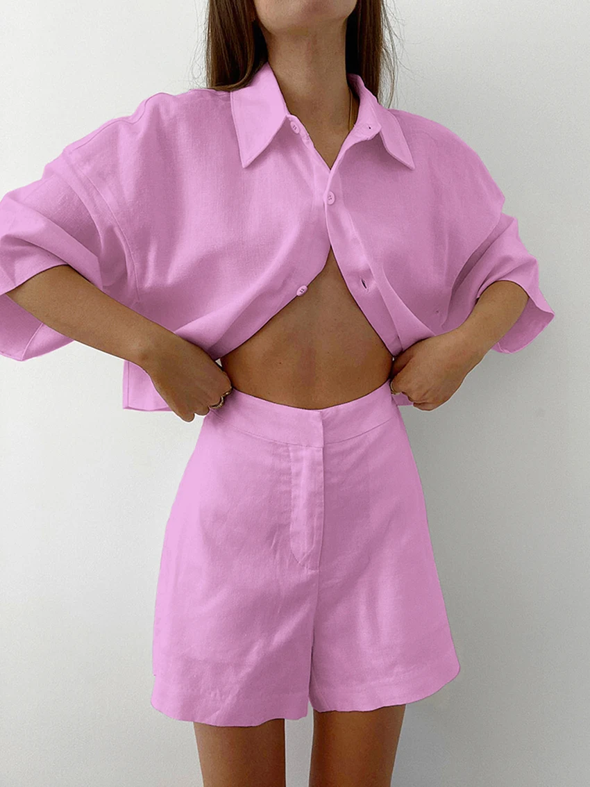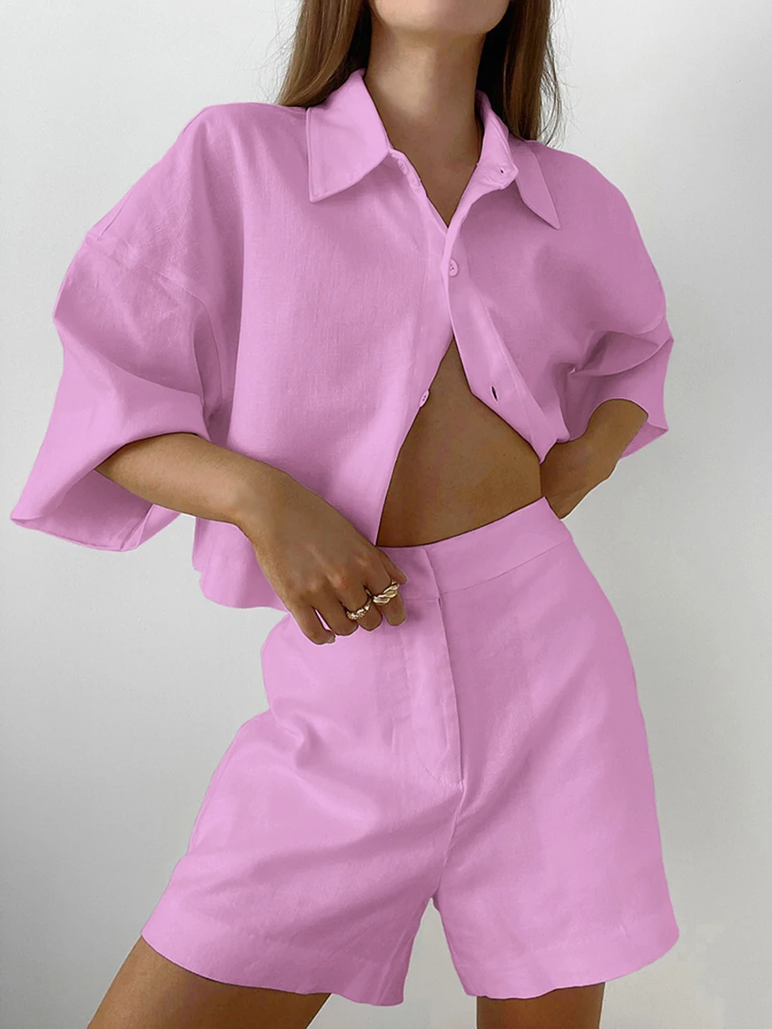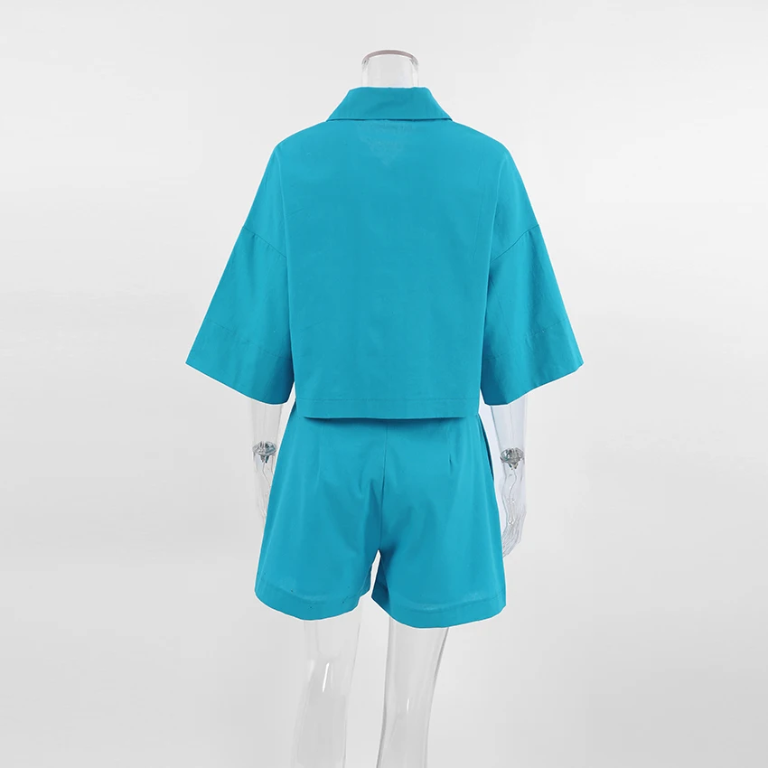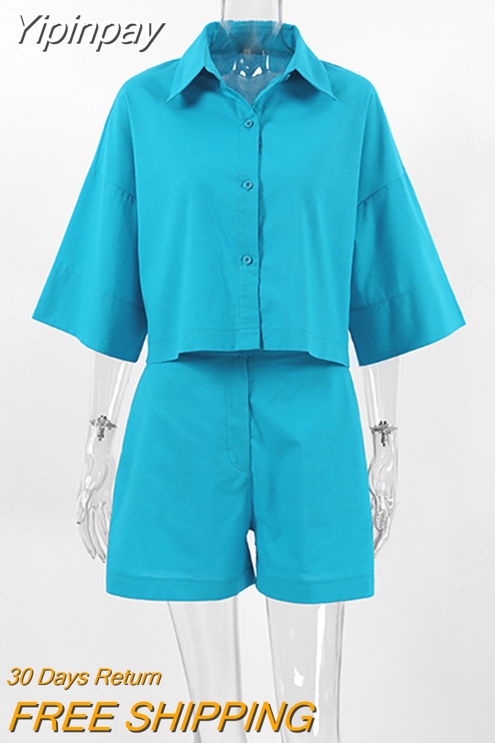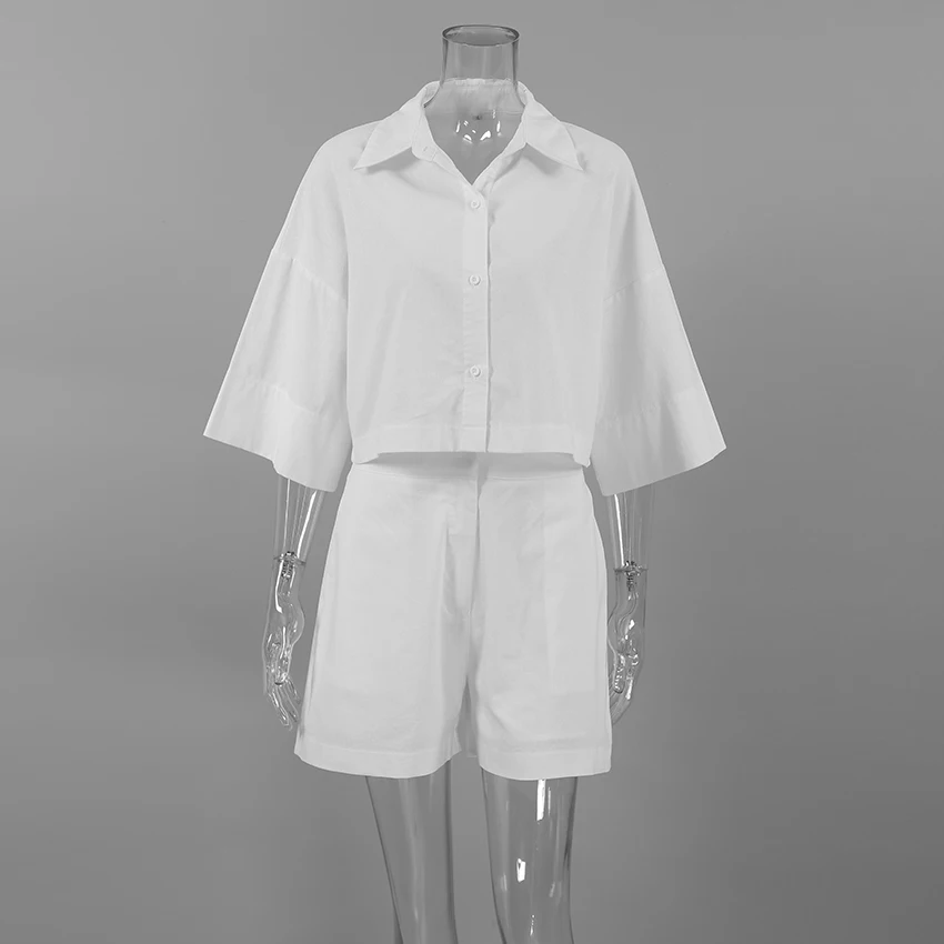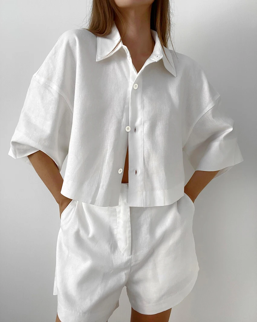 Yipinpay White Cotton Linen Shorts Sets 2-Piece Street Outfits Short Sleeve Shirt And Wide Leg Shorts Summer 2023 Ladies Suit