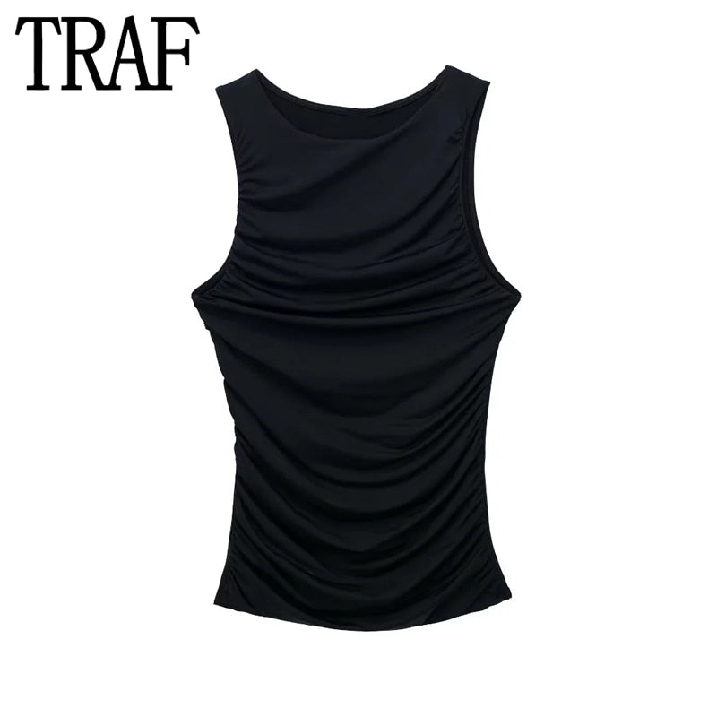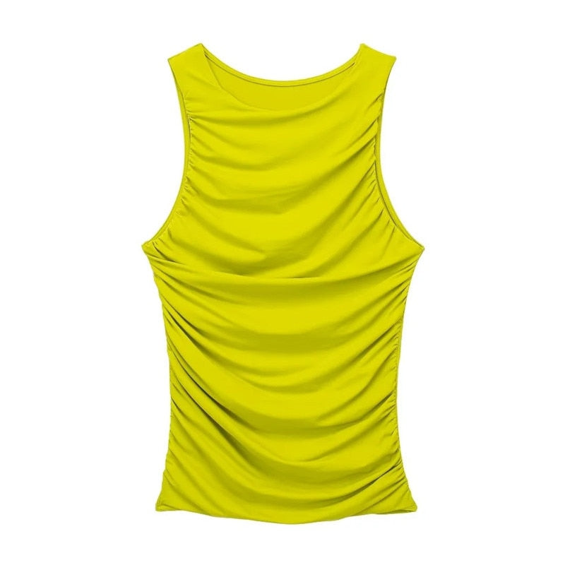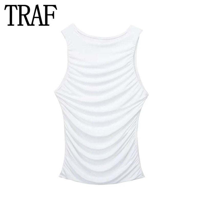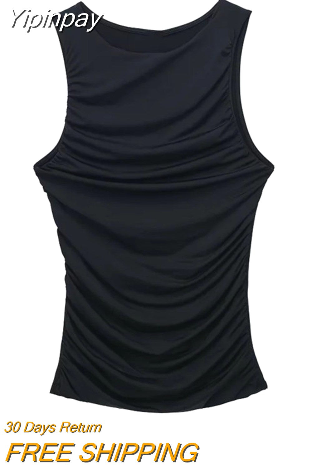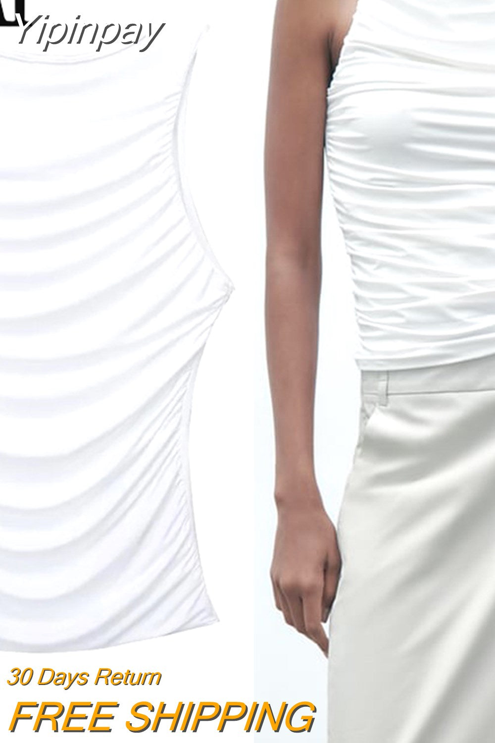 Yipinpay White Crop Top Women Ruched Sleeveless Tank Top Y2k Streetwear Sexy Tops Woman Fashion 2023 Beach Summer Going Out Tops