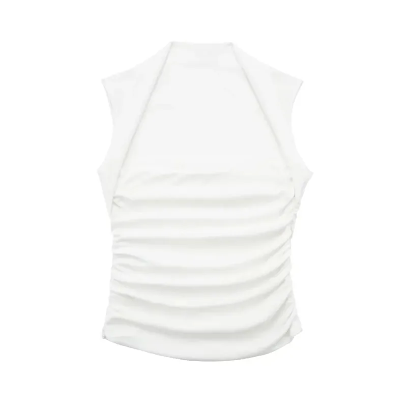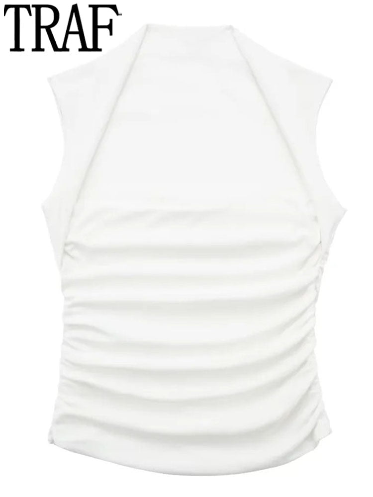Yipinpay White Crop Top Women Ruched Sleeveless Top Female Streetwear Y2k Fashion Woman Blouse 2023 Summer Sexy Off Shoulder Top