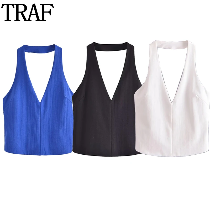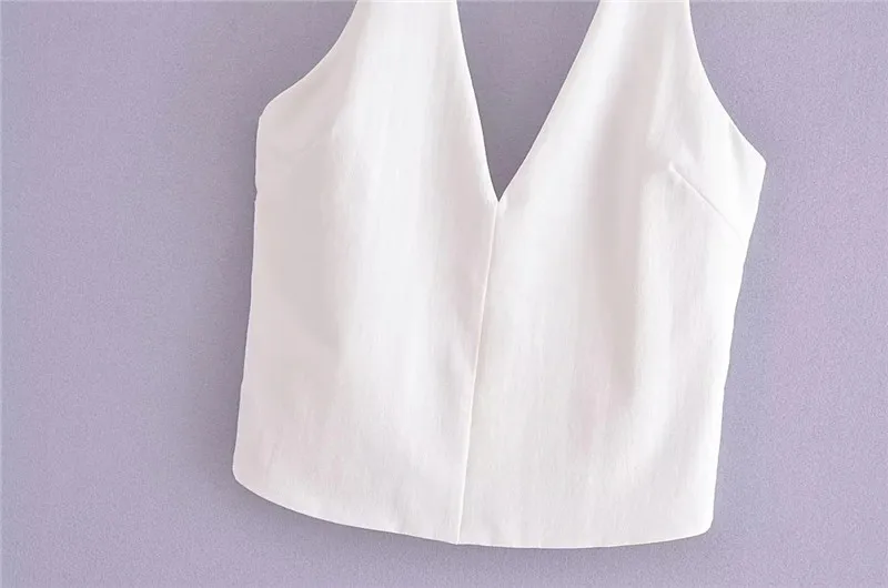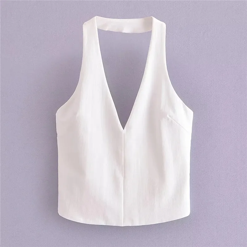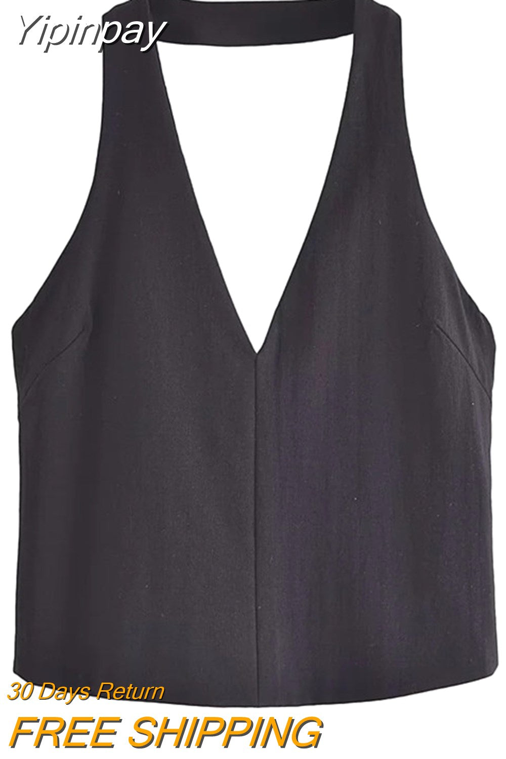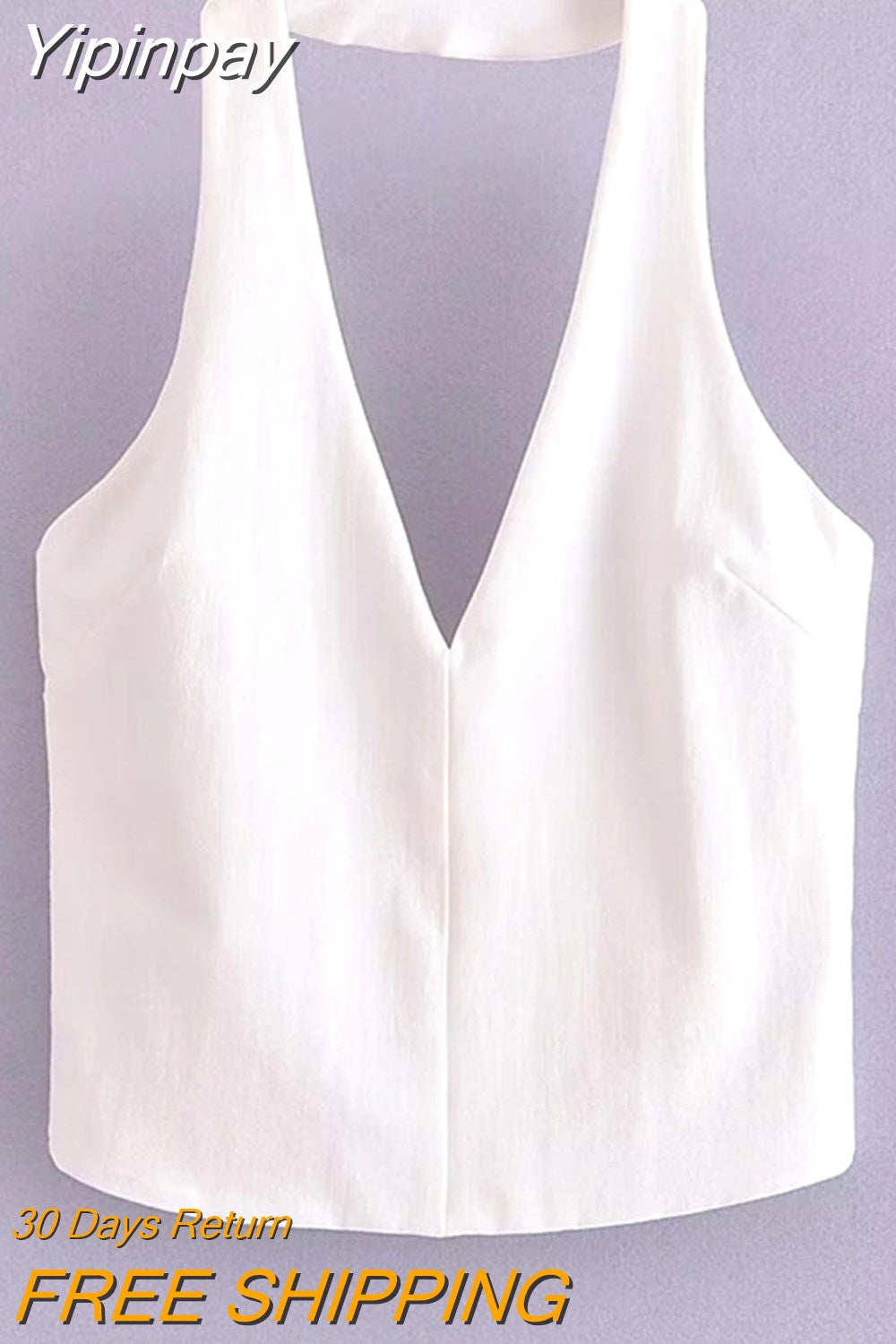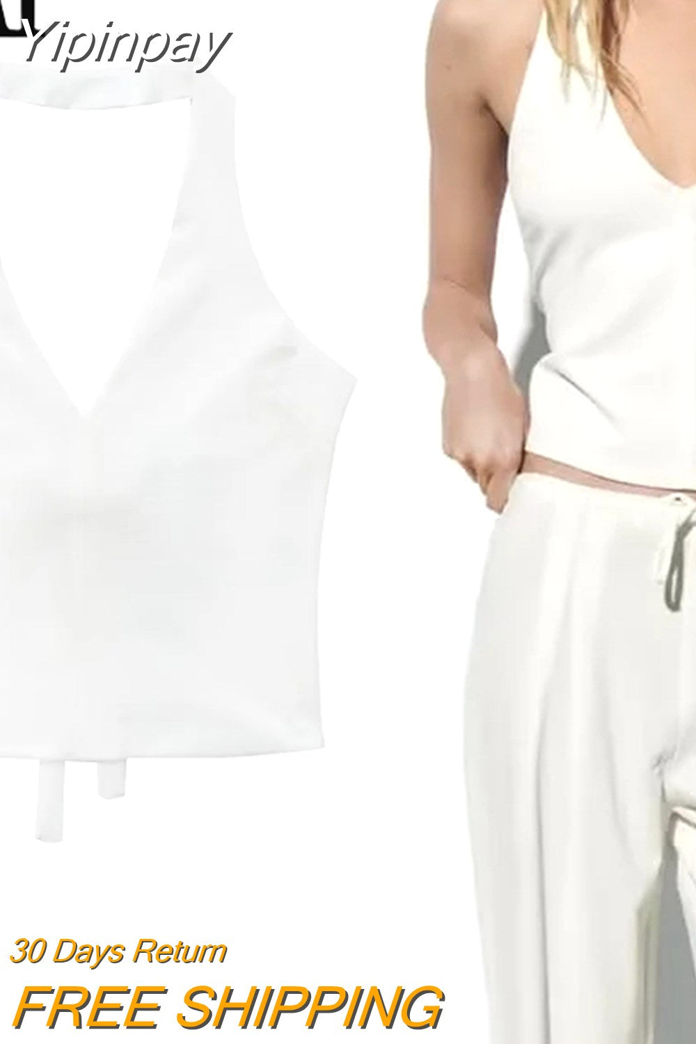 Yipinpay White Halter Top Female Off Shoulder Crop Tops For Women Sexy Sleeveless Backless Top Woman Tied Streetwear Summer Tops