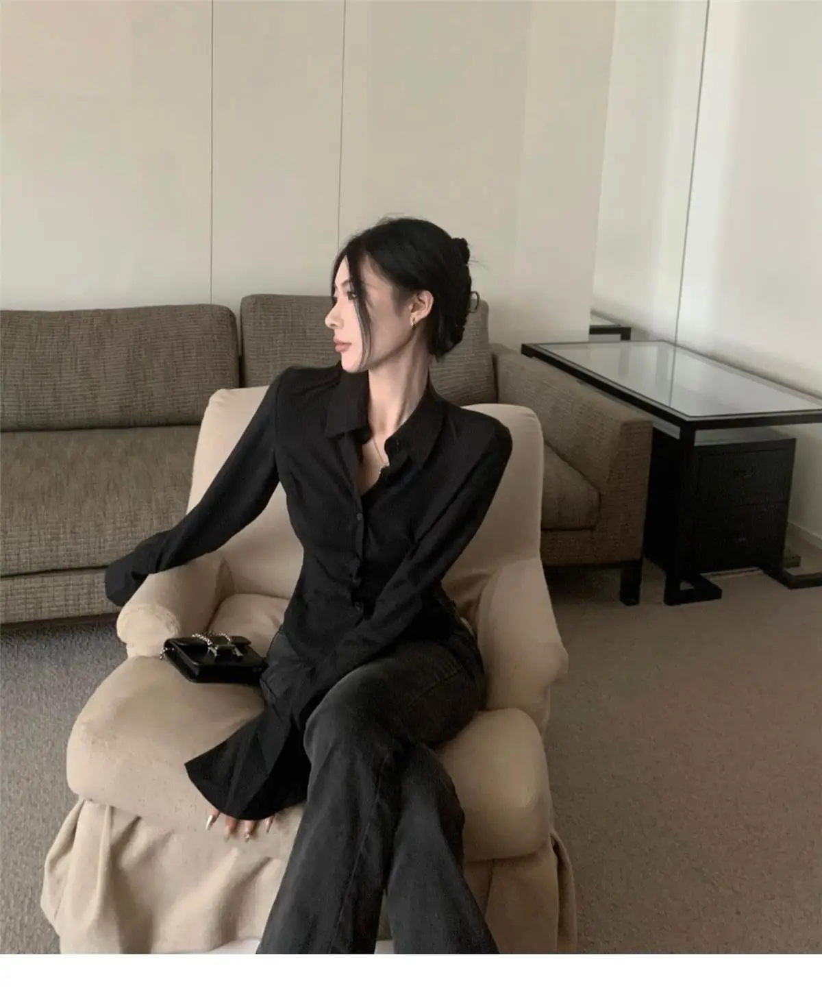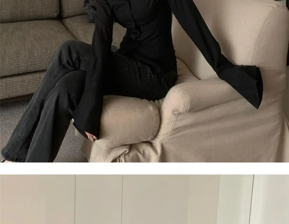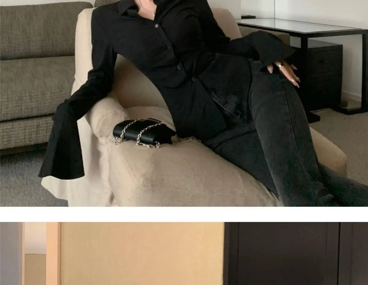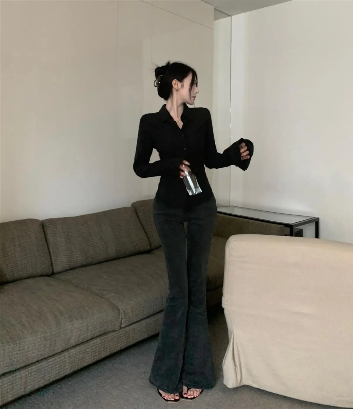 Yipinpay White Shirt Women Slim Waist Flare Sleeve Tops Blusas Mujer Spring Sexy Y2k Airycore Aesthetics Blouse 2023 Black Shirts
