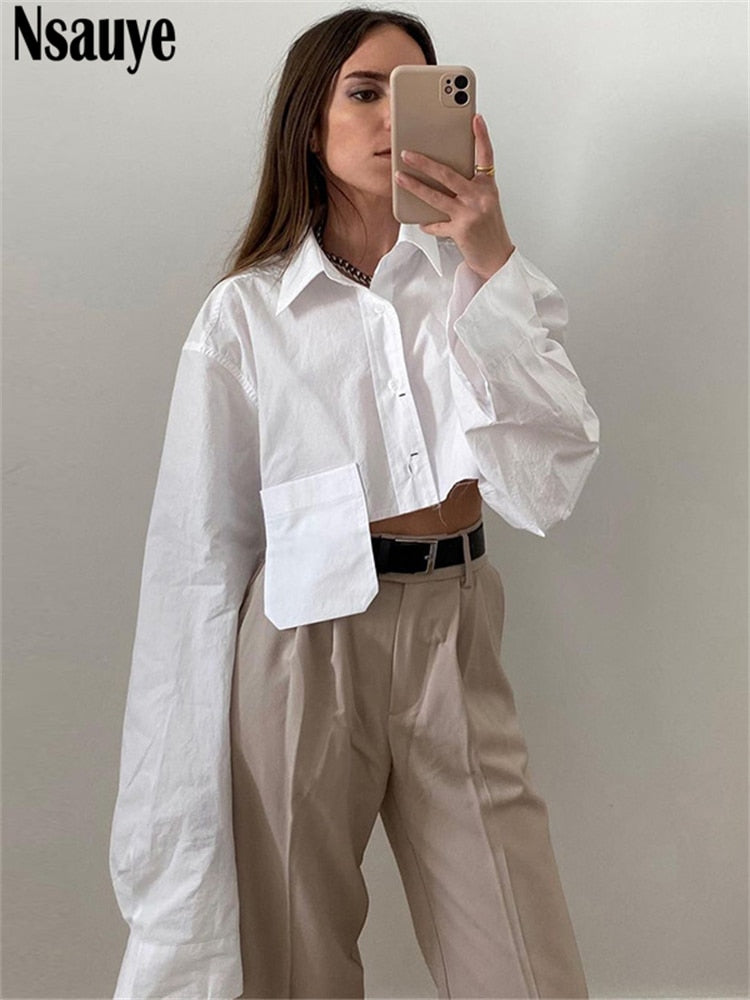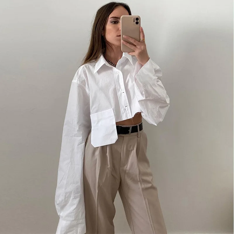 yipinpay White Women Fashion Blouses 2023 Long Sleeve Casual Female Clothes Shirt Tops Oversized Summer Autumn Streetwear Blouse