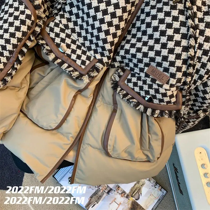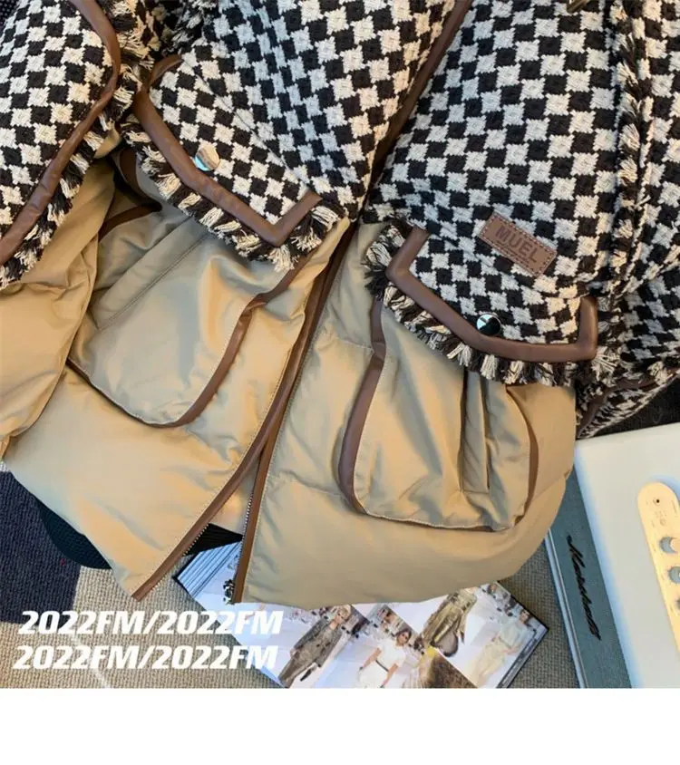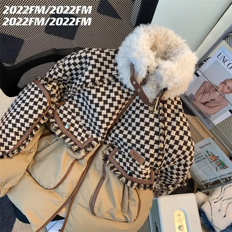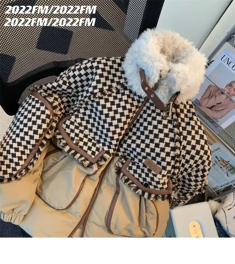 Yipinpay Winter Coat Women Patchwork Parkas Warm Lamb Wool Coat High Collar Parkas Fur Puffer Plaid Jacket Women Loose Top