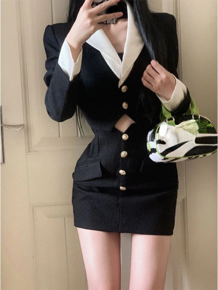 Yipinpay Winter Elegant Blazer Skirt Set Outfits Black Fashion 2 Piece Set Office Lady Y2k Crop Tops Slim Mini Skirt Woman Korean