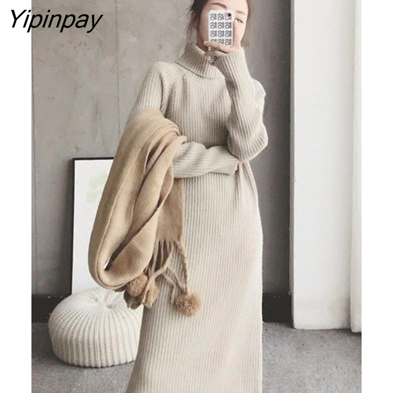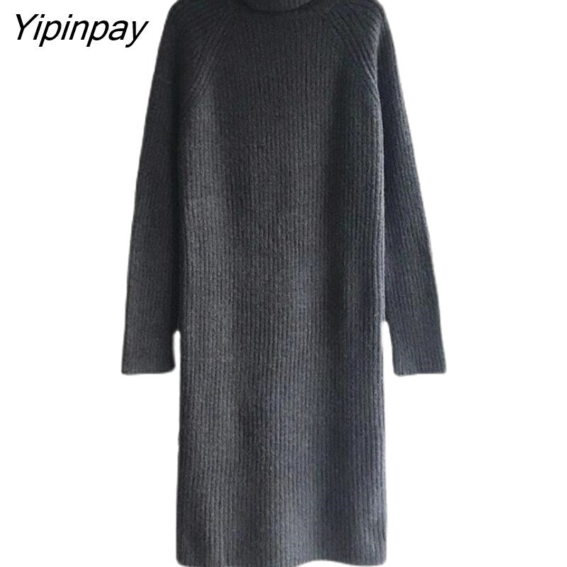 Yipinpay Winter High Collar With Loose Thickened Long Sweater Dress Women