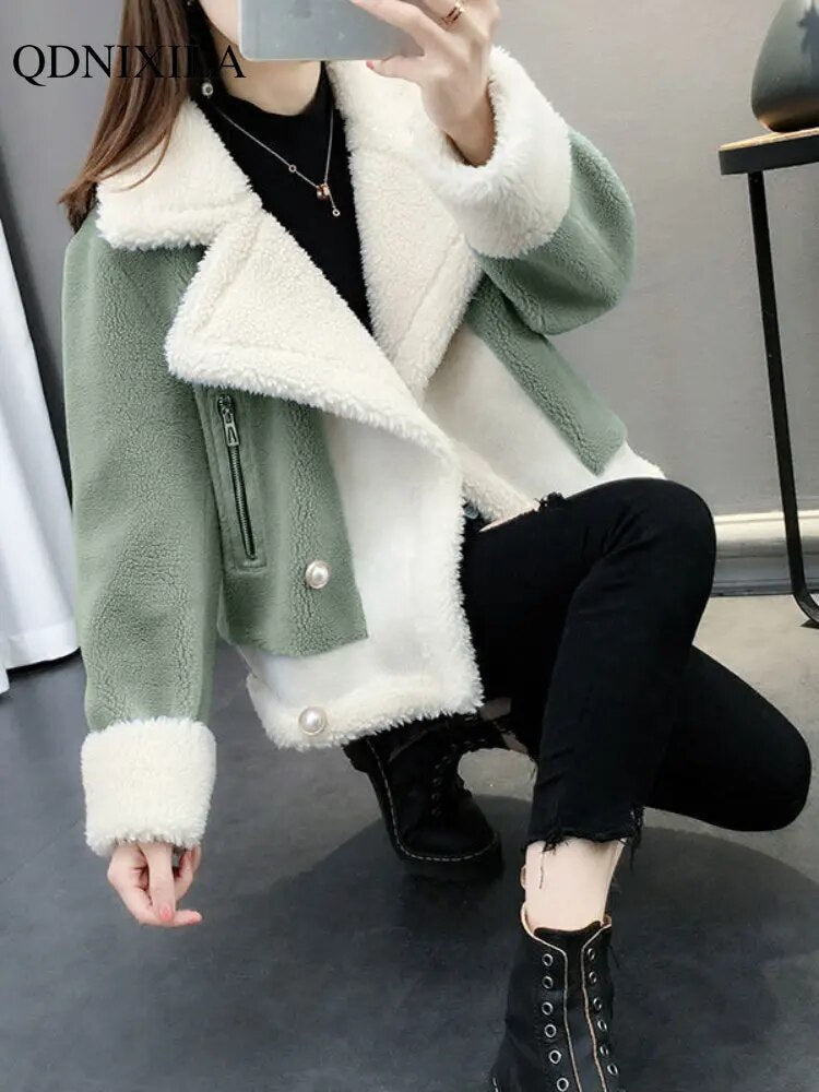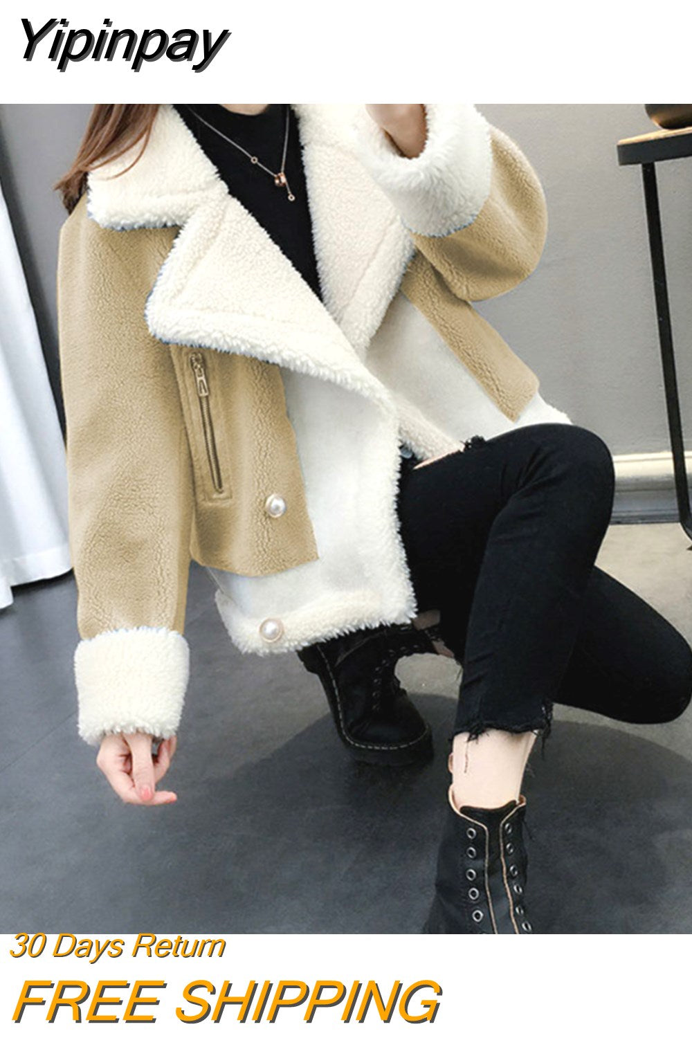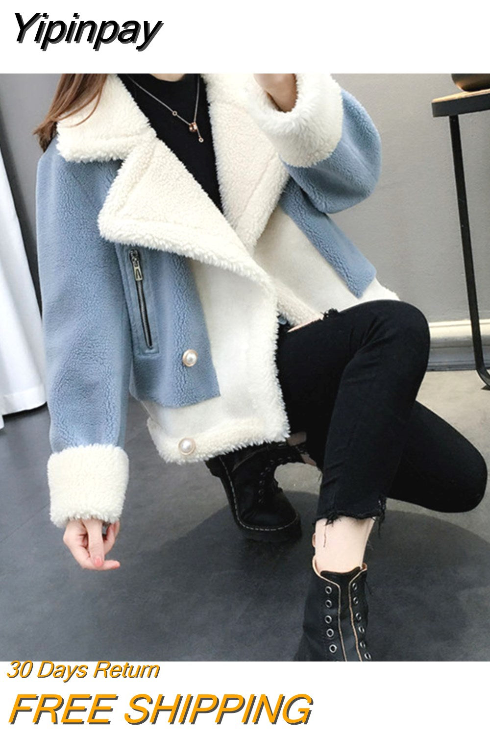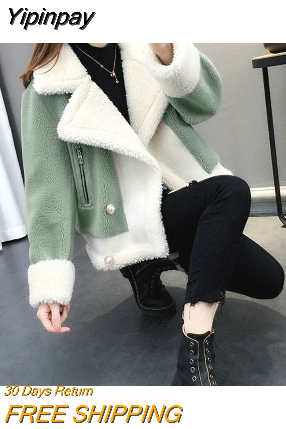 Yipinpay winter new in outerwear chic loose knit integrated thick cardigan varsity jacket women lamb wool coat women fashion short