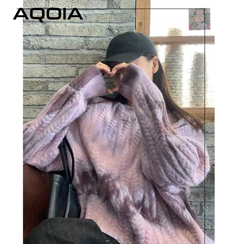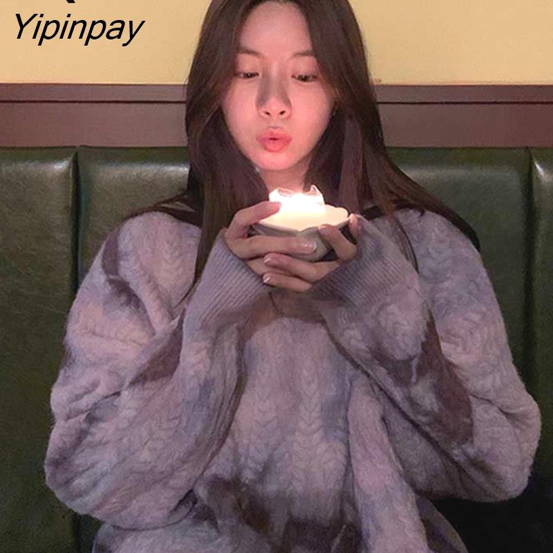 Yipinpay Winter Streetwear Tie dye Knit Women's Sweater Loose Long Sleeve Wool Warm Sweaters Women Fashion Female Pullovers Tops