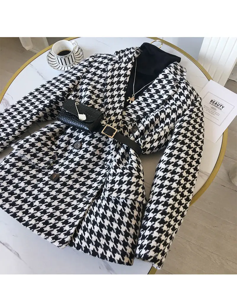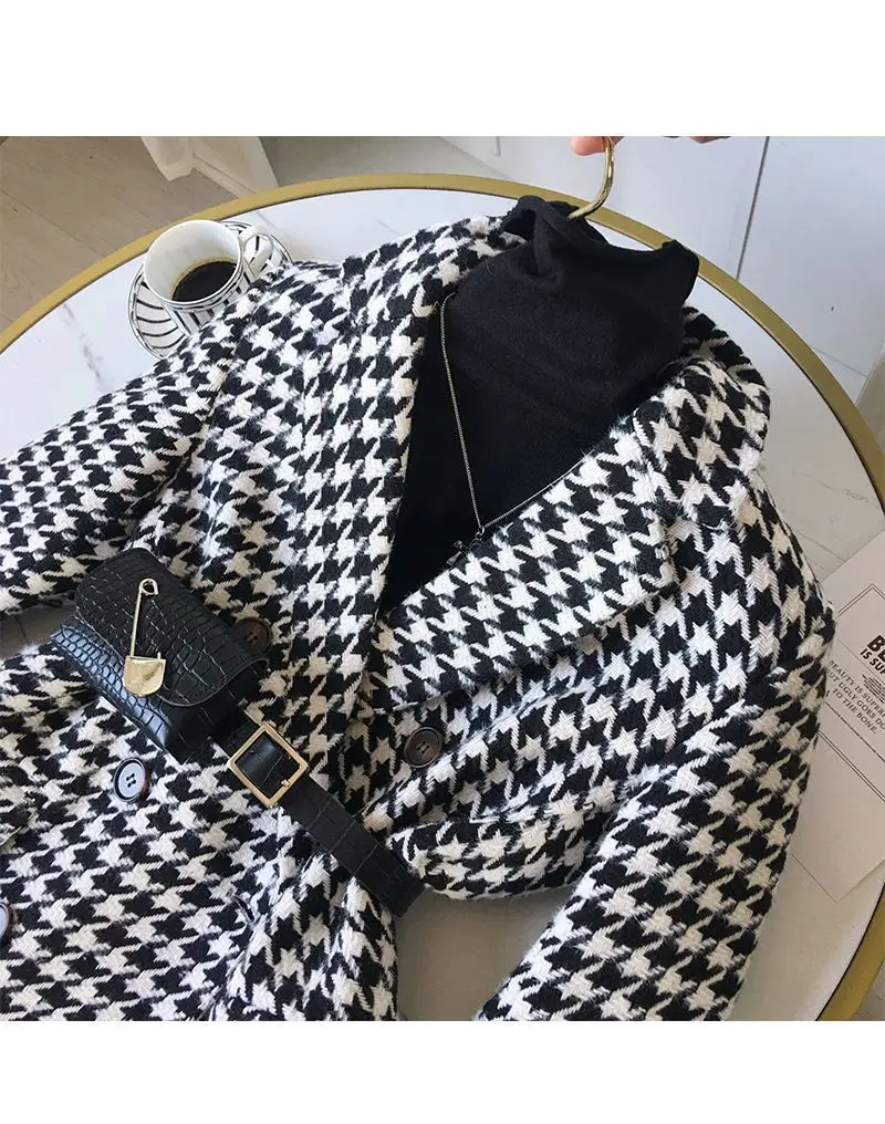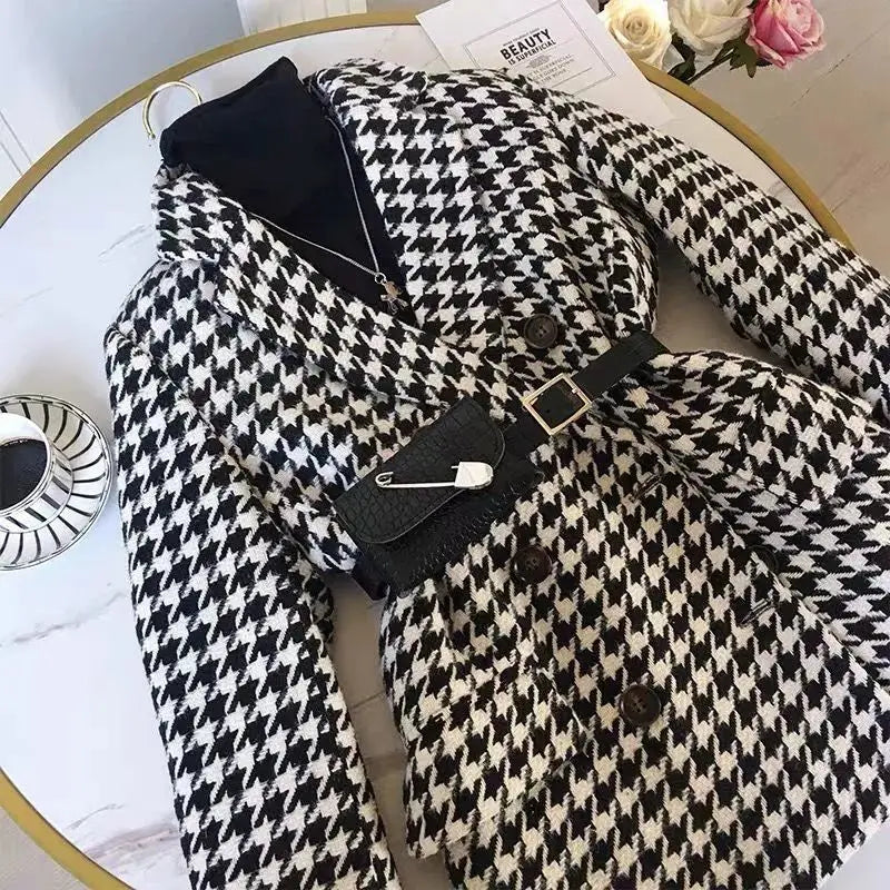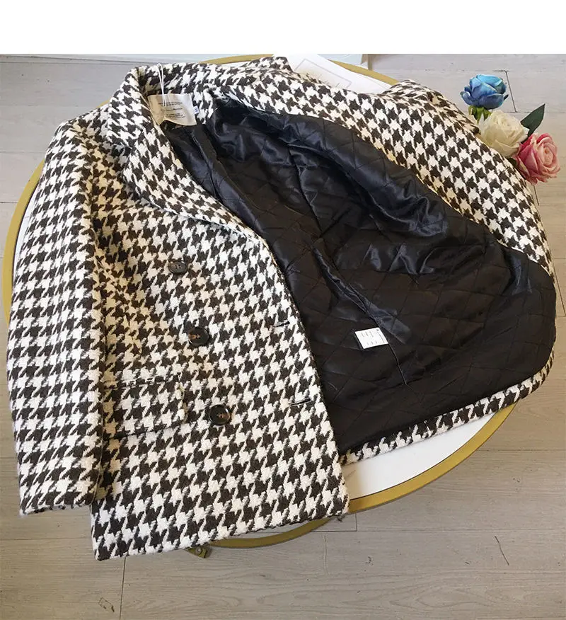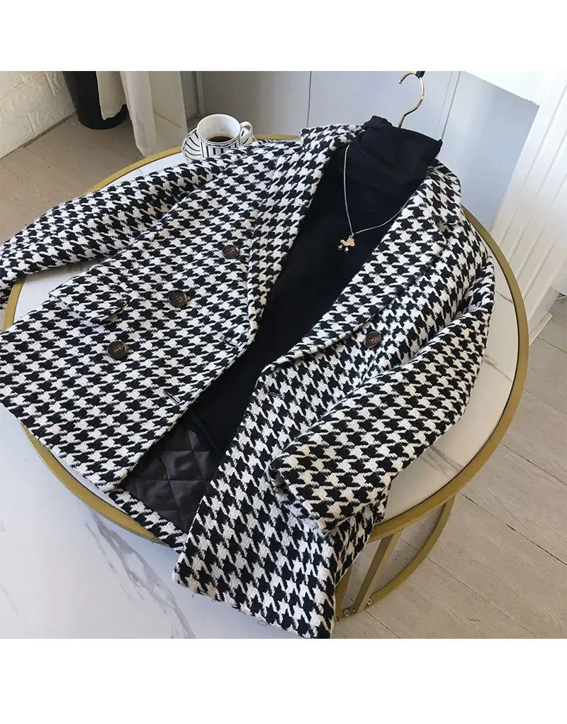 Yipinpay Winter Tailored Coat Vintage Thousand Bird Plaid Jacket Women Jaqueta Feminina Woolen Coat Blends Tweed Blazer