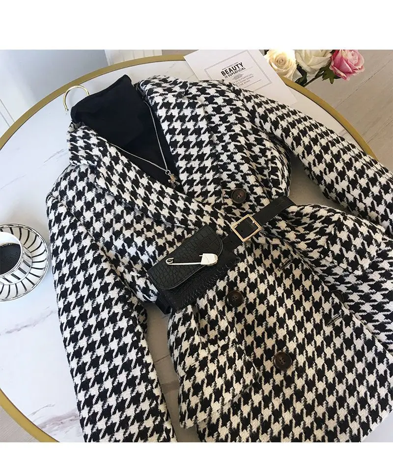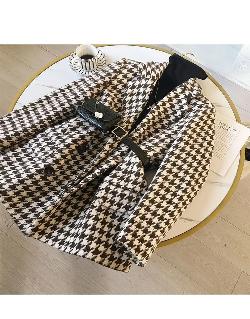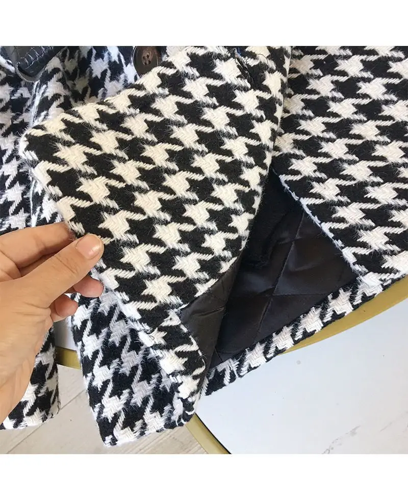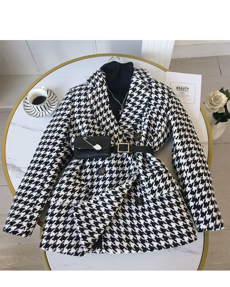 Yipinpay Winter Tailored Coat Vintage Thousand Bird Plaid Jacket Women Jaqueta Feminina Woolen Coat Blends Tweed Blazer
