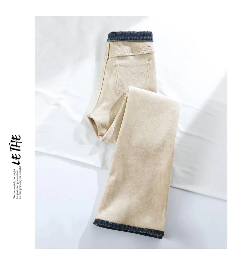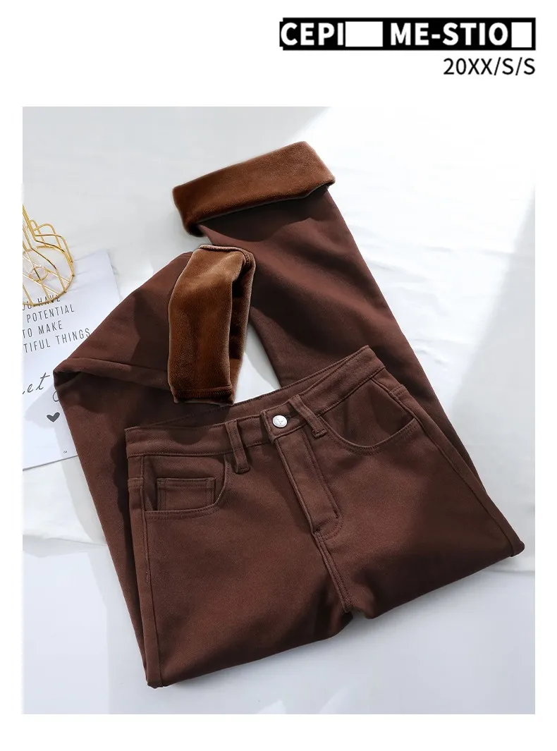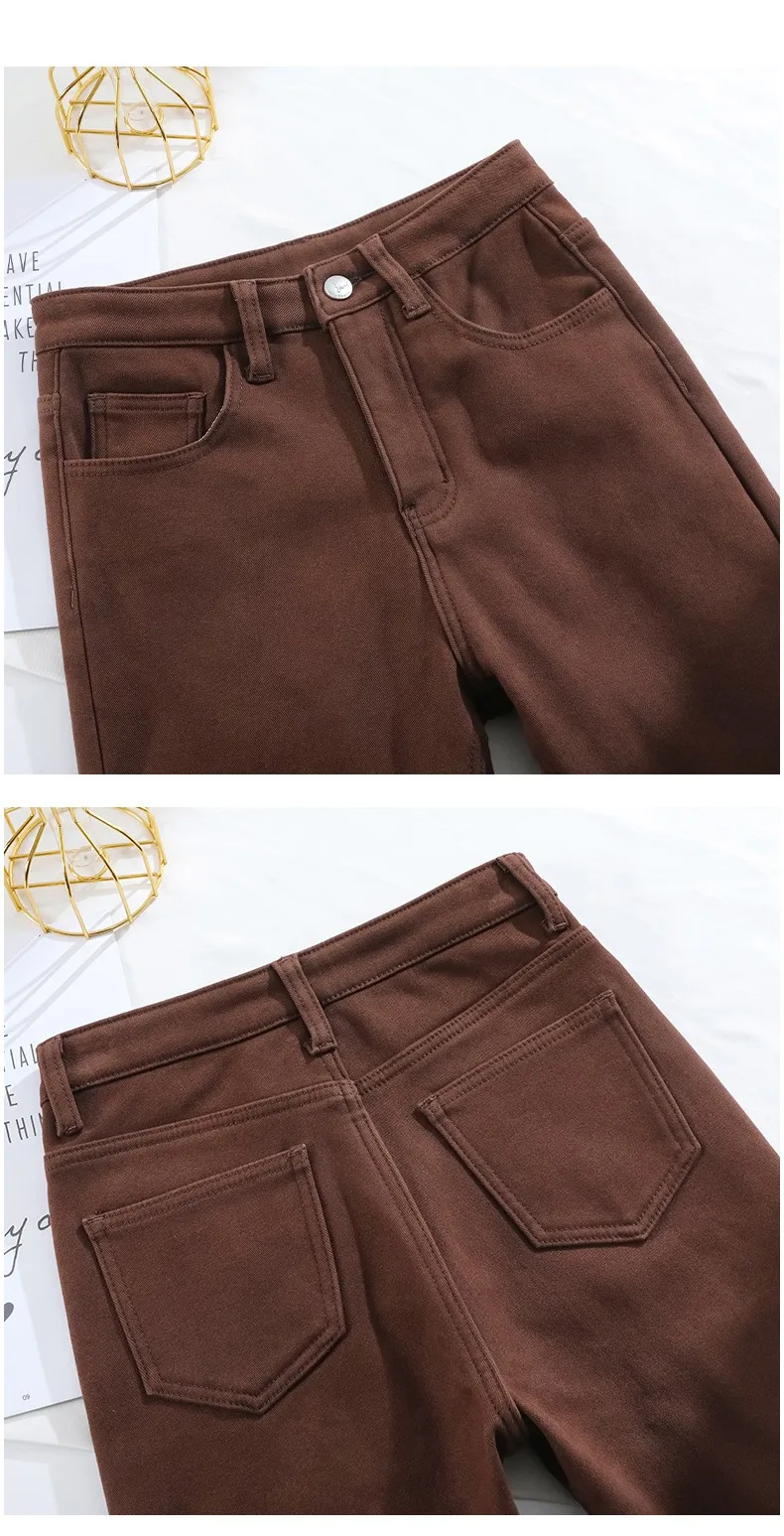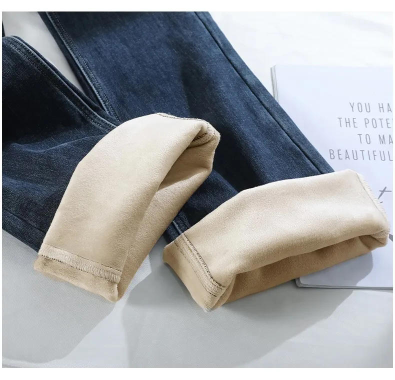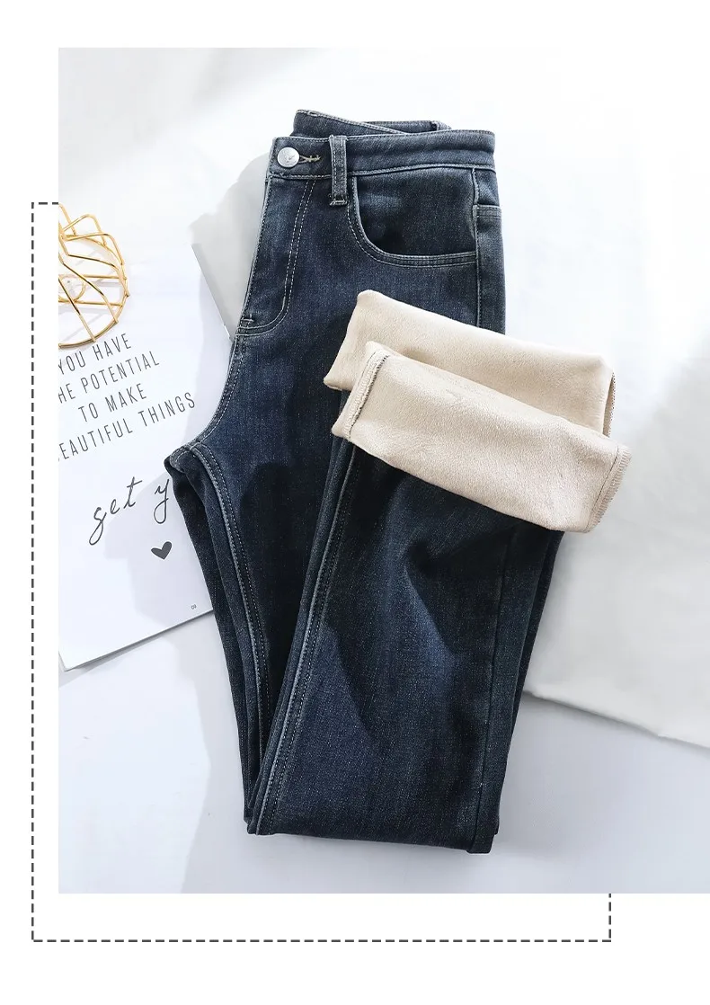 Yipinpay Winter Warm High Waist High Elastic Thickened Mini Flare Jeans Woman Lengthened Plus Velvet