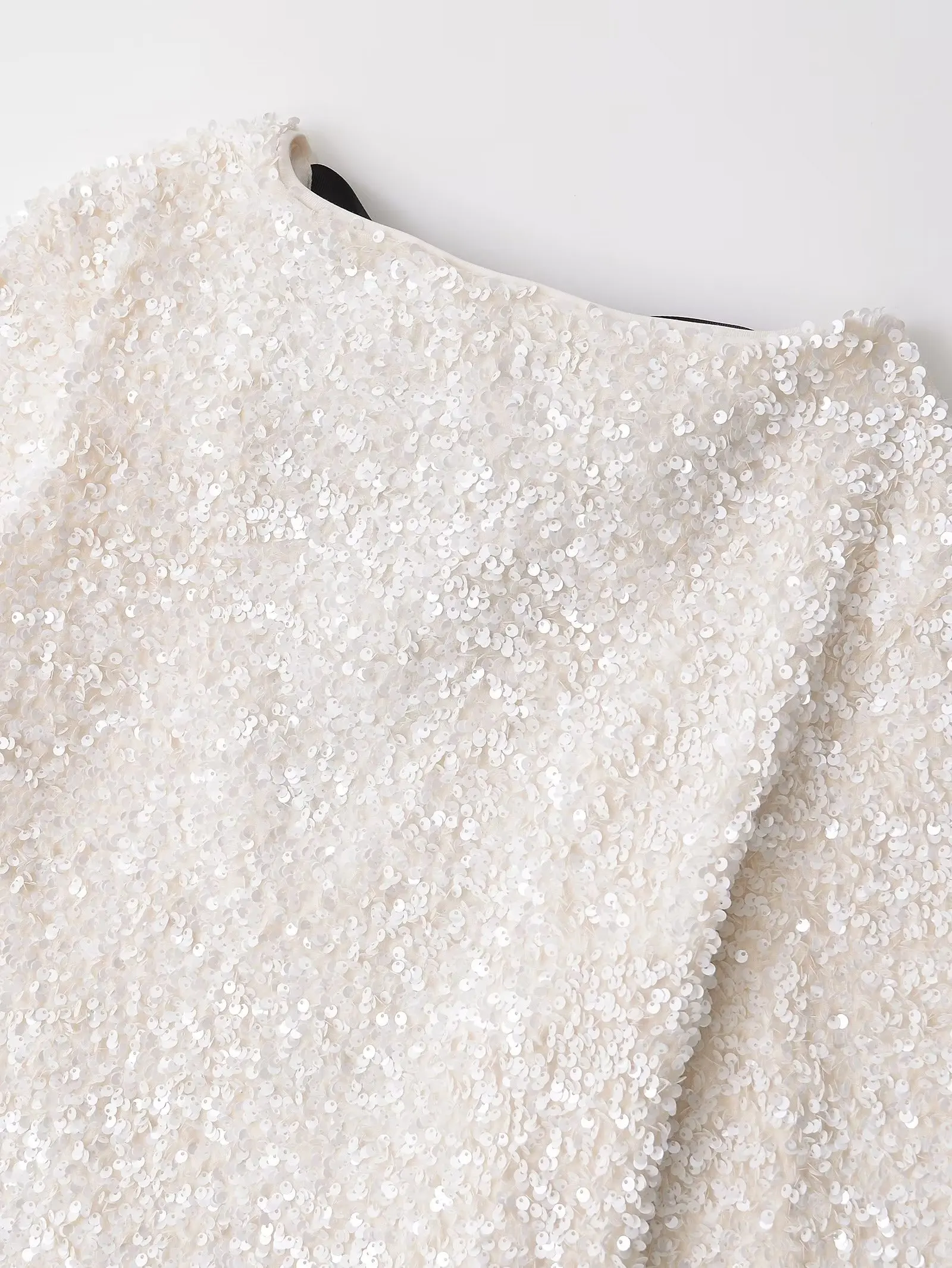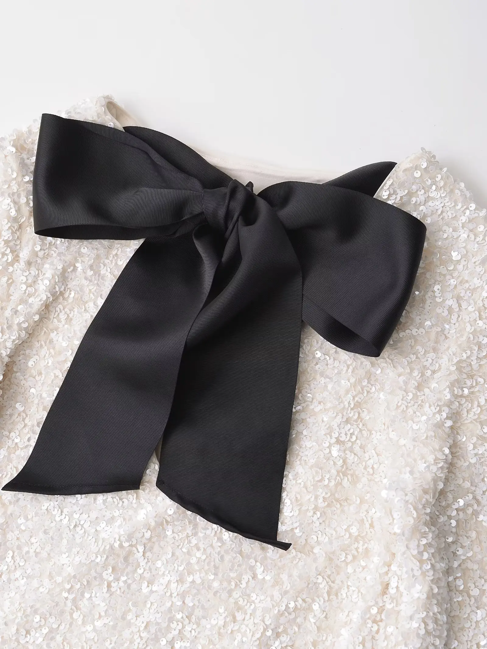 Yipinpay Winter Women Contrast Color Bow Sequin Dress O Neck Long Sleeve Female Christmas Party Mini Dresses