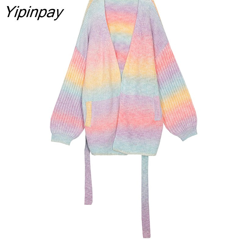 Yipinpay Winter Women Sweater V-neck Sweet Loose Knitted Cardigans Color Top Female Fashion Casual Pull Femme Hiver HOT